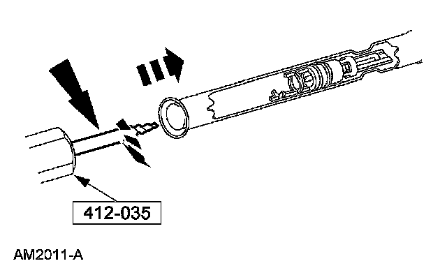 5. To remove a broken A/C evaporator core orifice, screw the end of the special tool into the broken A/C evaporator core orifice.
