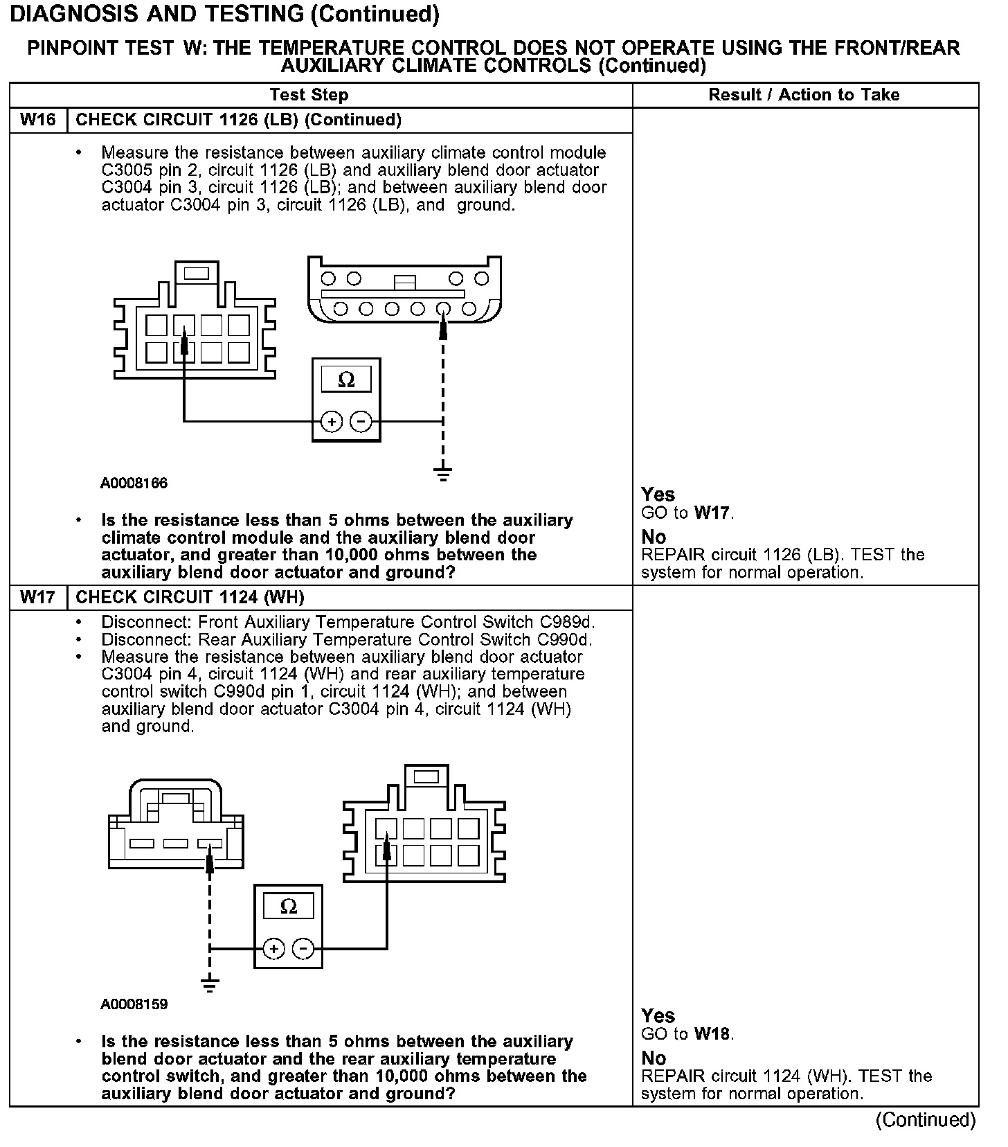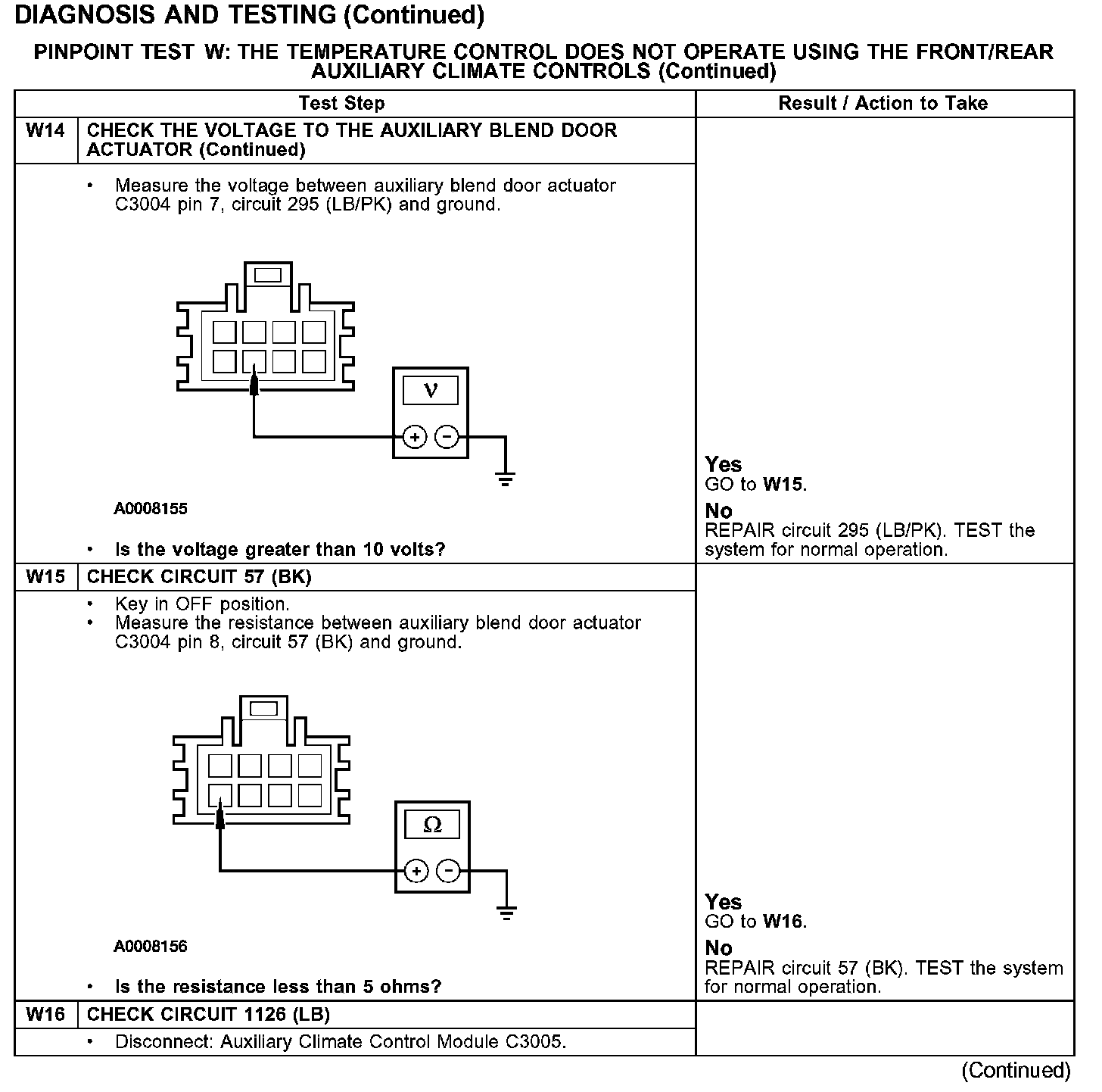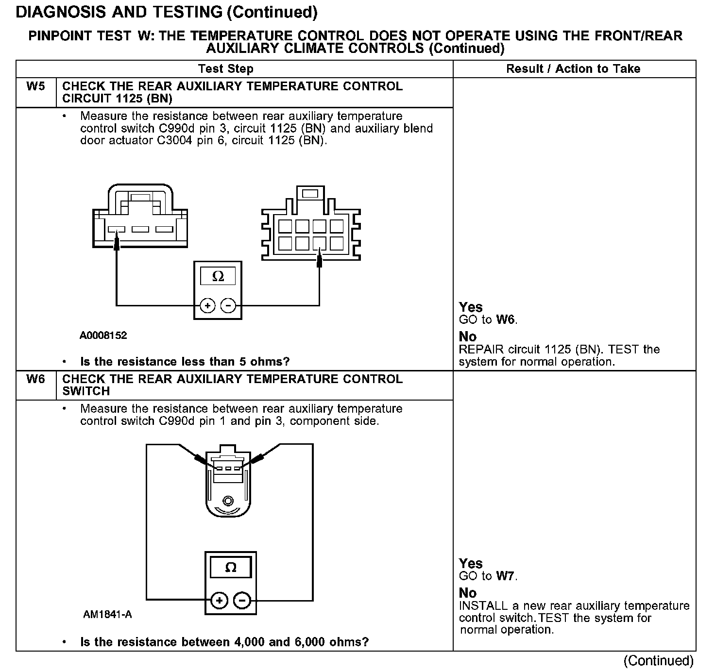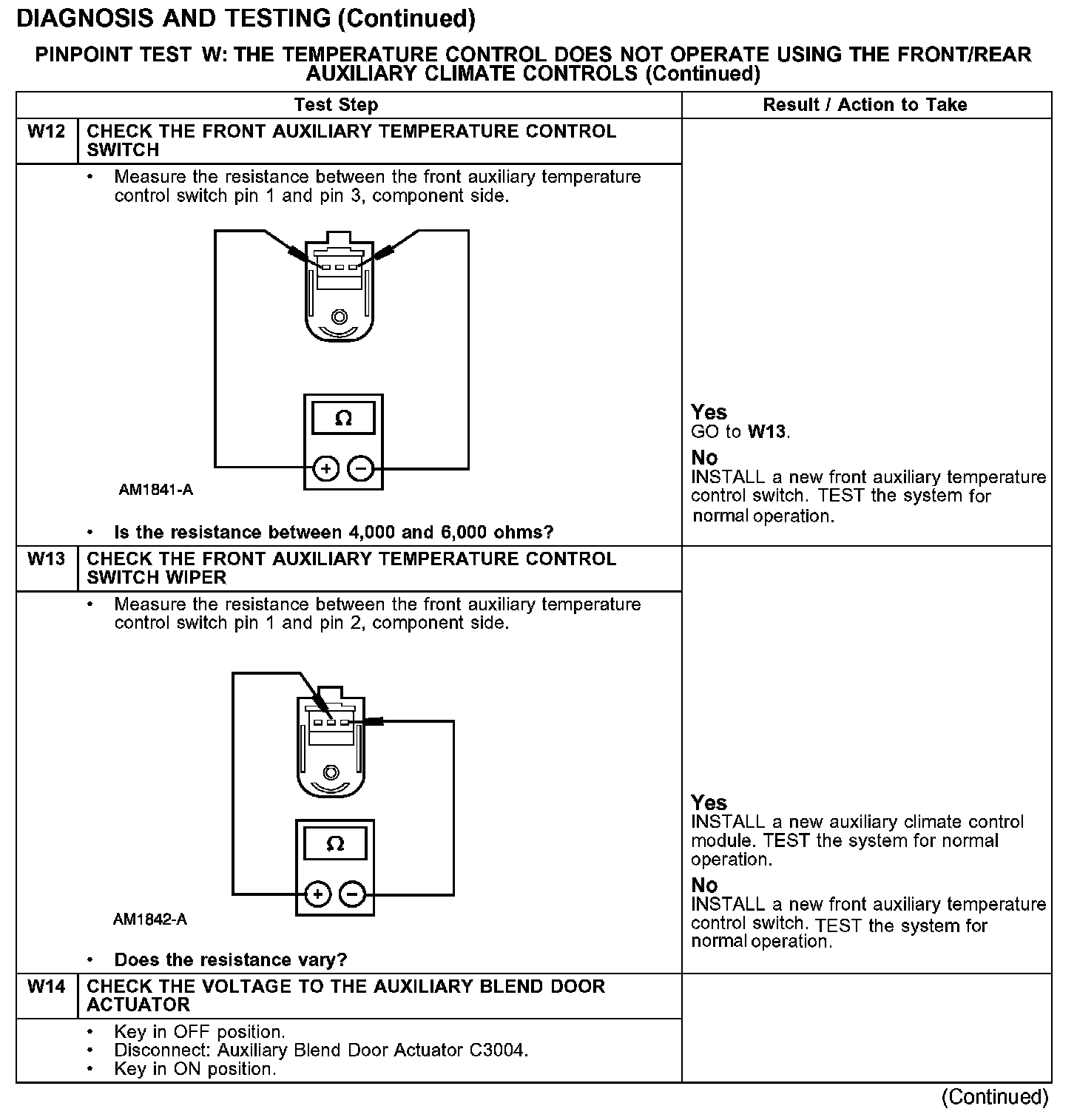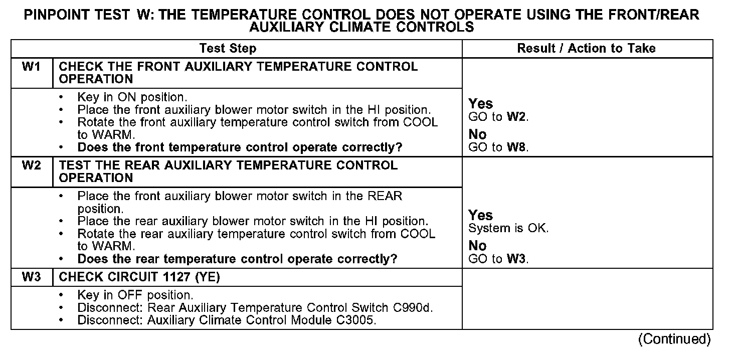 Test W: The Temperature Control Does Not Operate Using the Front/Rear Auxiliary Climate Controls