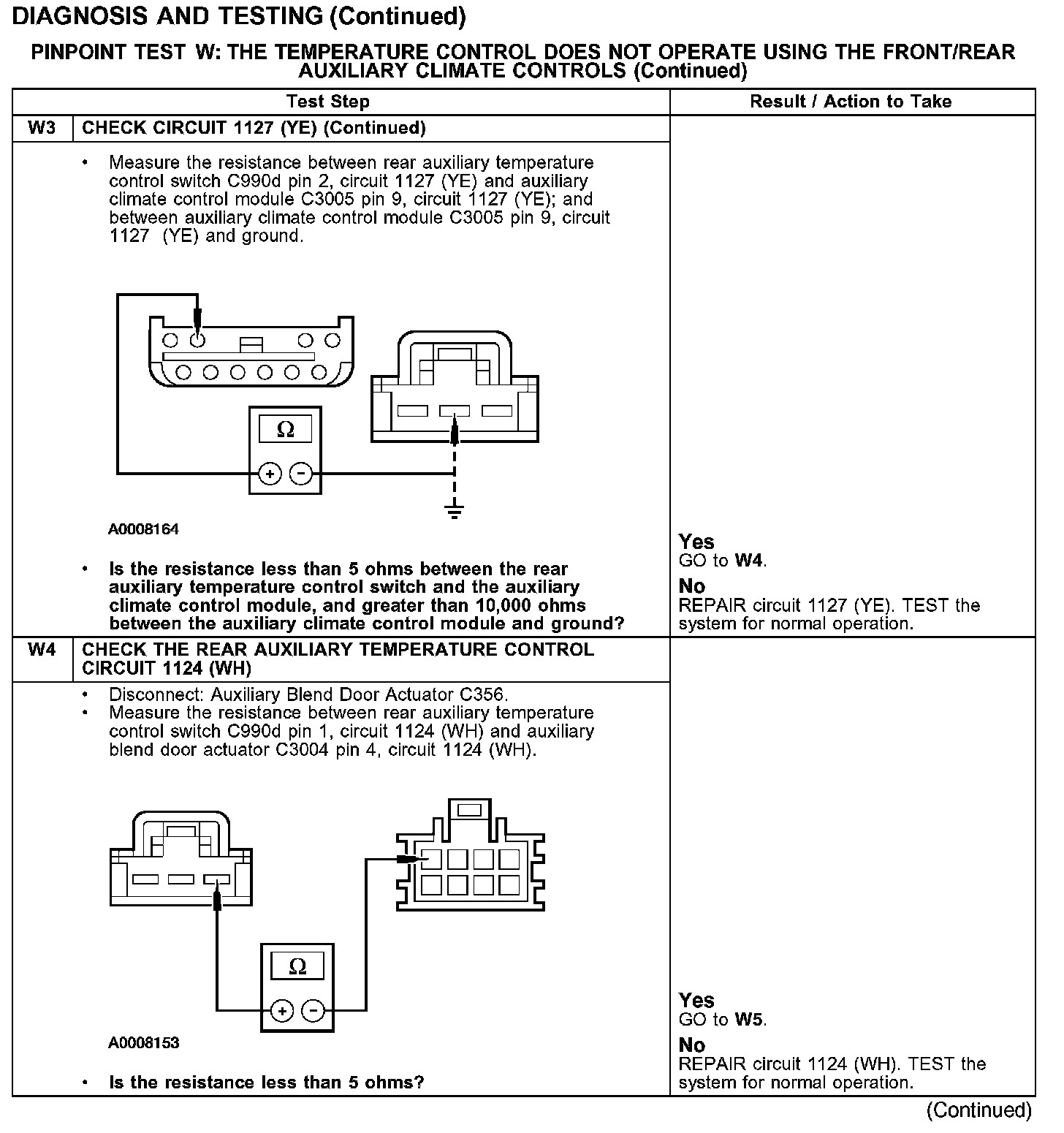PINPOINT TEST W: THE TEMPERATURE CONTROL DOES NOT OPERATE USING THE FRONT/REAR AUXILIARY CLIMATE CONTROLSW1-W3: