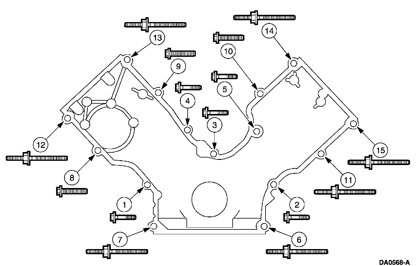 Front CoverStage 1: Tighten fasteners 1 through 7 to 25 Nm (18 ft. lbs.).