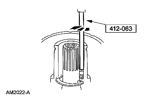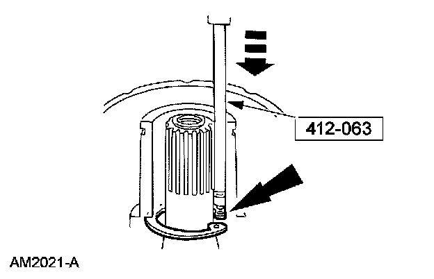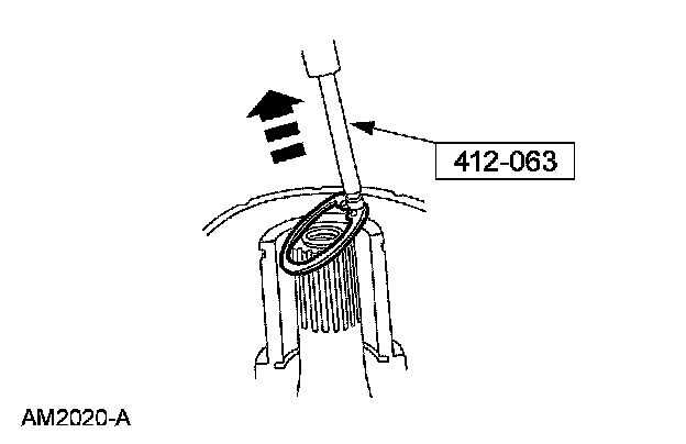 8. Pull the special tool up quickly while keeping the tool shaft against the side of the nose opening and remove the snap ring.