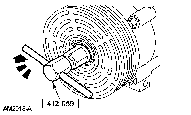 1 Hold the A/C clutch disc and hub with the special tool.