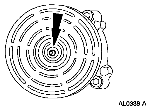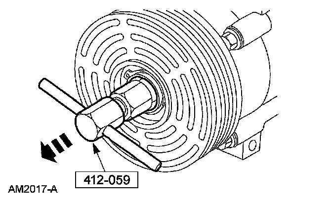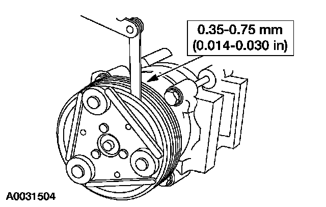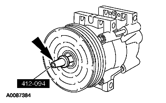 11. Measure and adjust the clutch air gap by removing or adding A/C clutch disc and hub spacers.