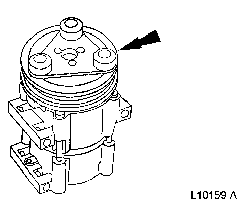 1 Thread an 8 x 1.25 mm bolt into the A/C clutch disc and hub to force it from the A/C compressor shaft.