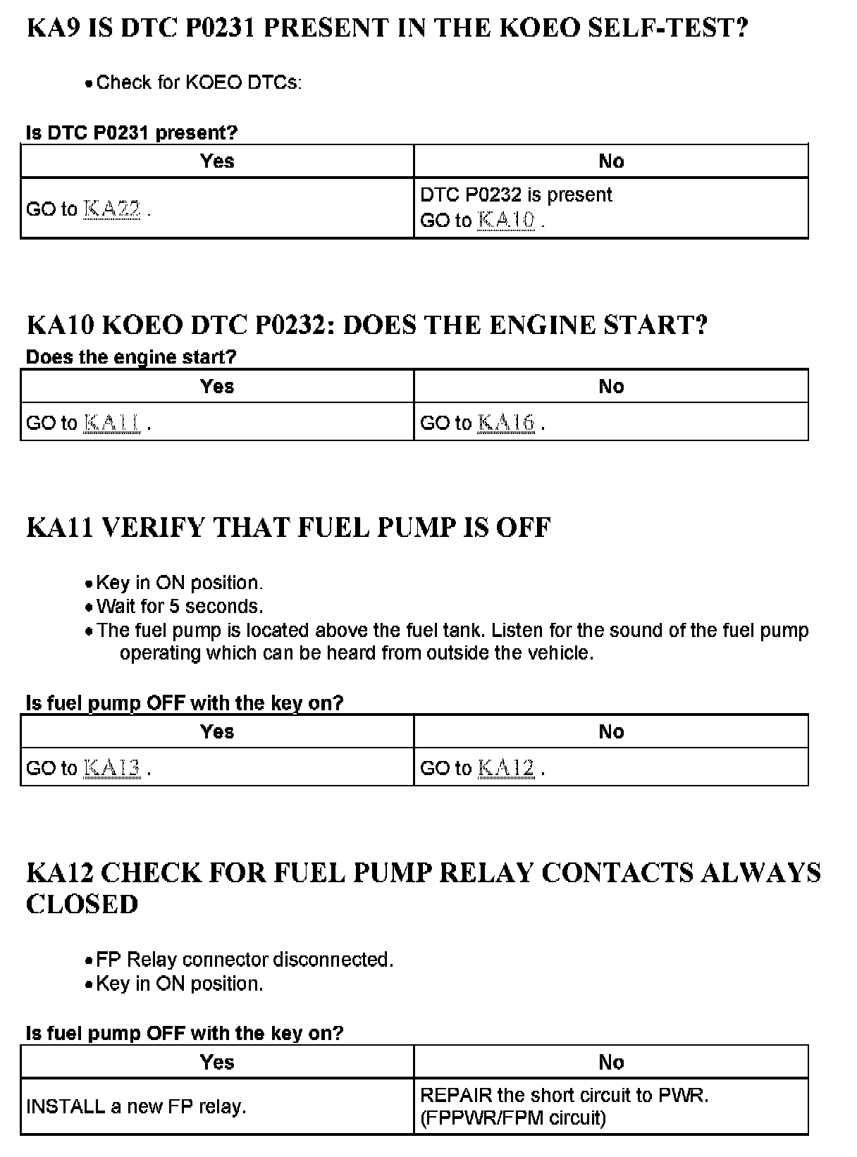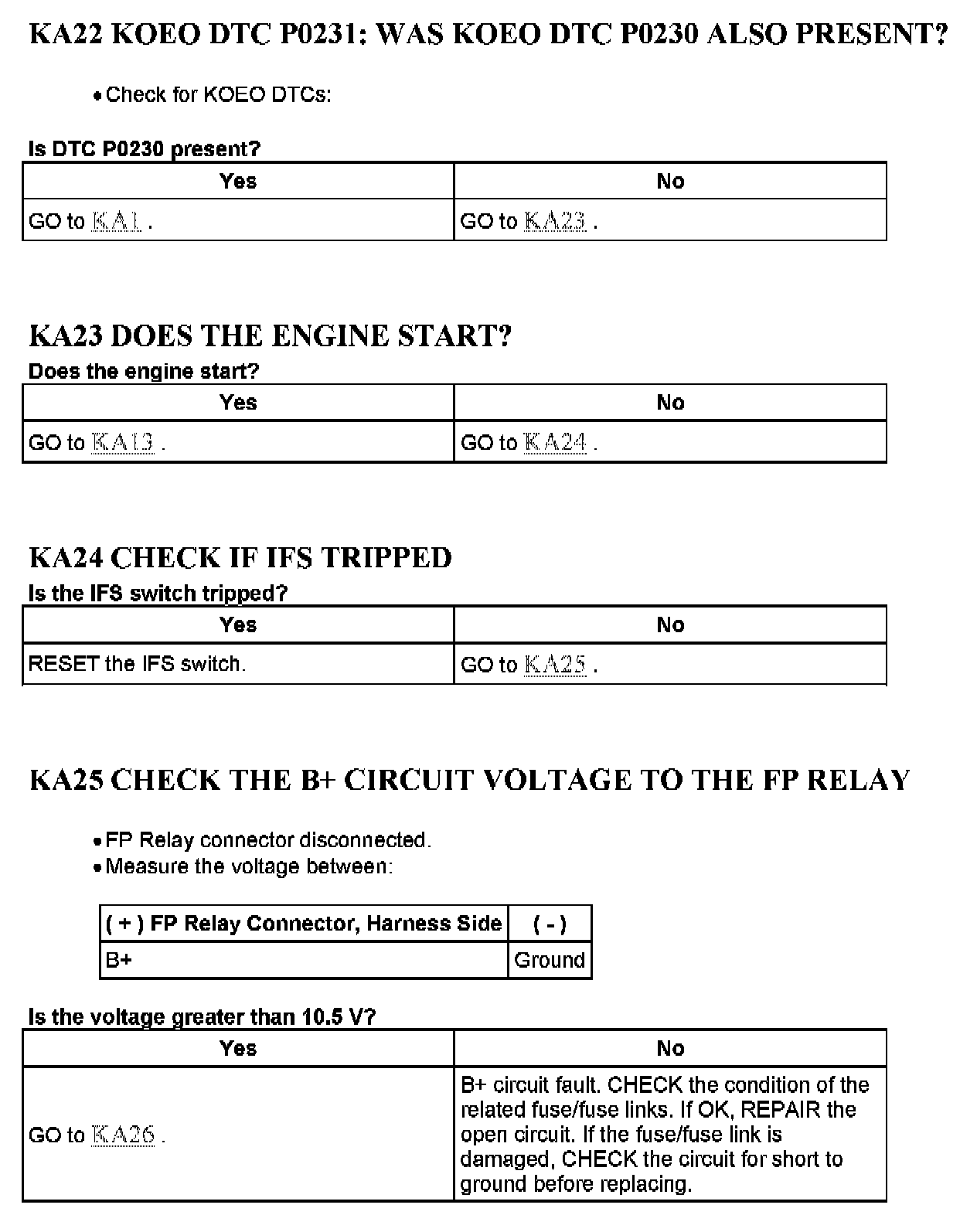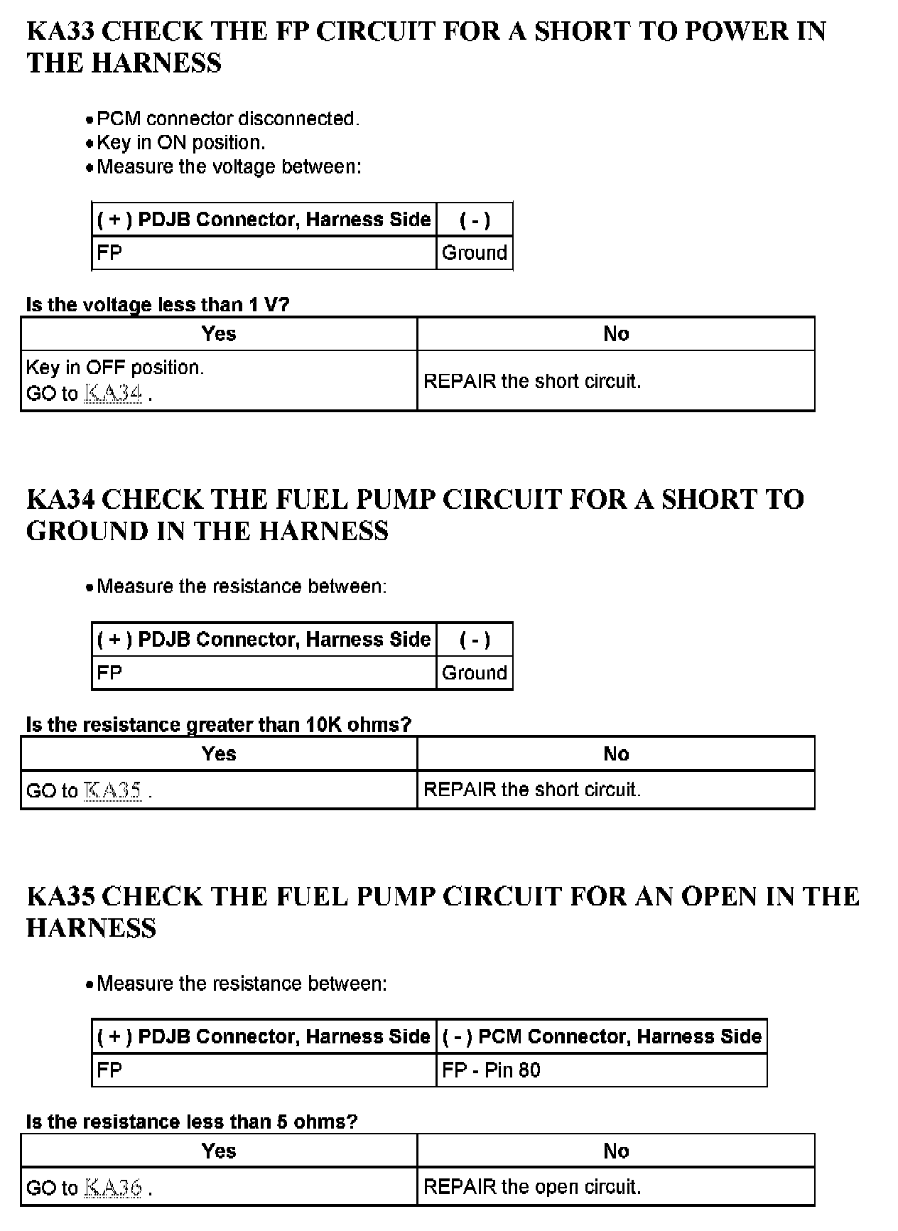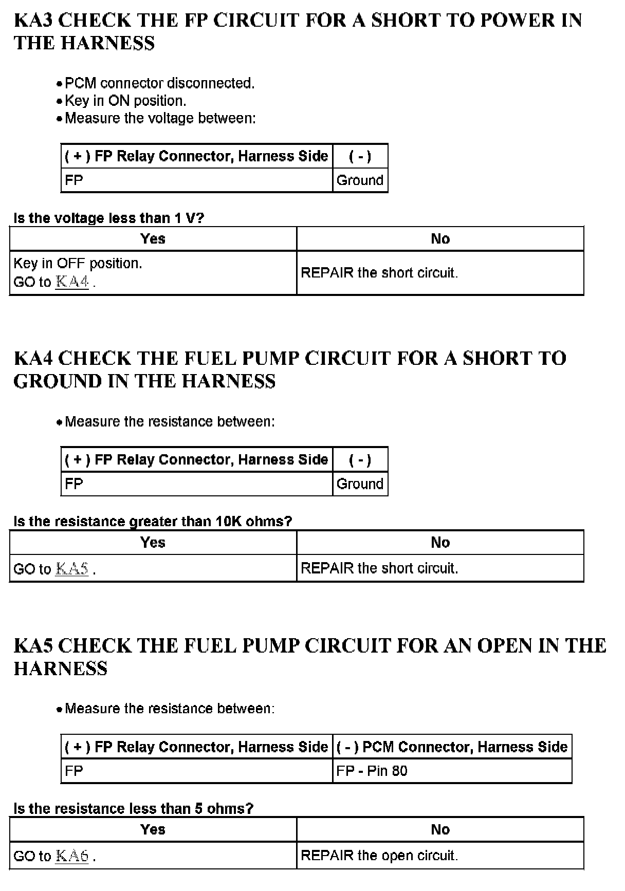 PINPOINT TEST KA: FUEL PUMP (FP) RELAY