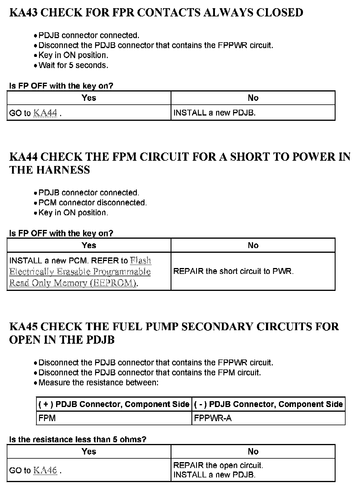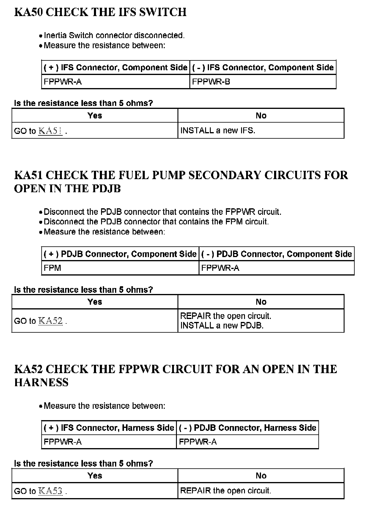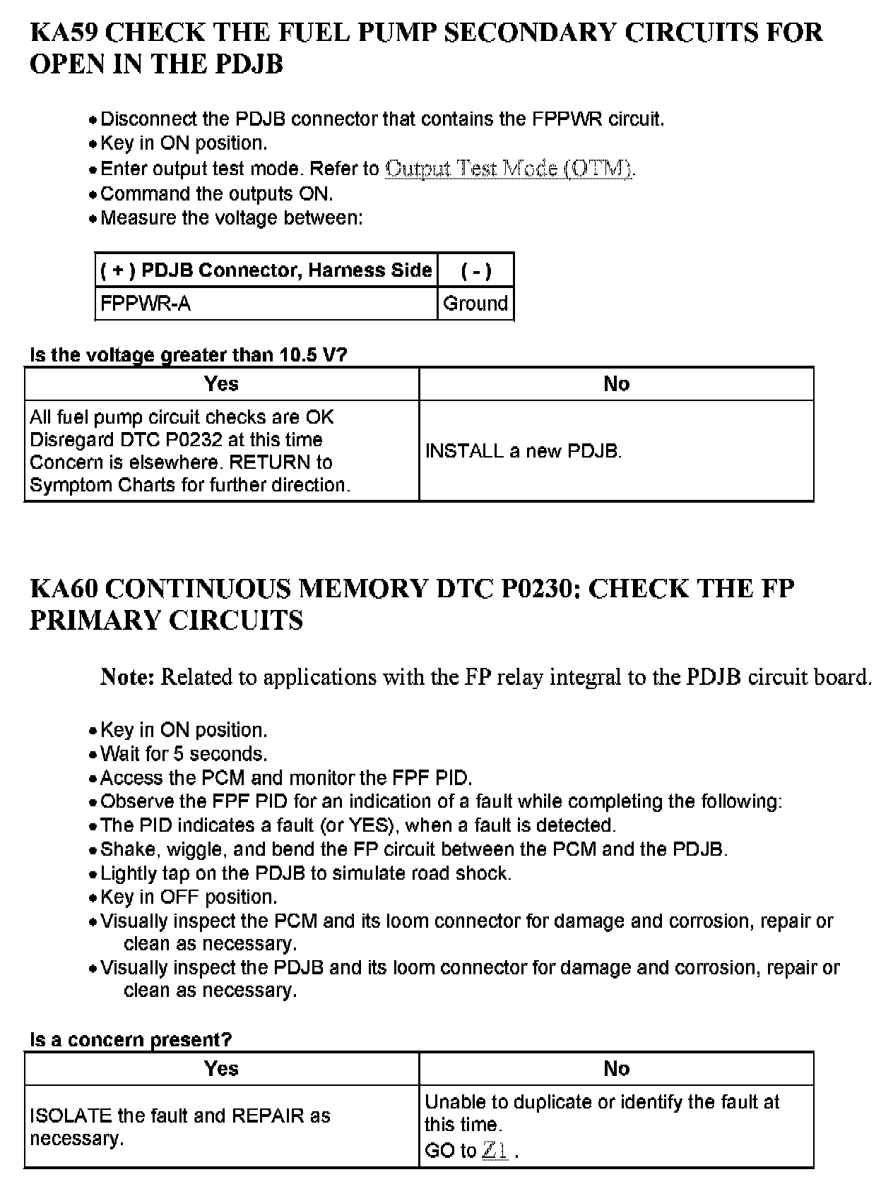 PINPOINT TEST KA: FUEL PUMP (FP) RELAY