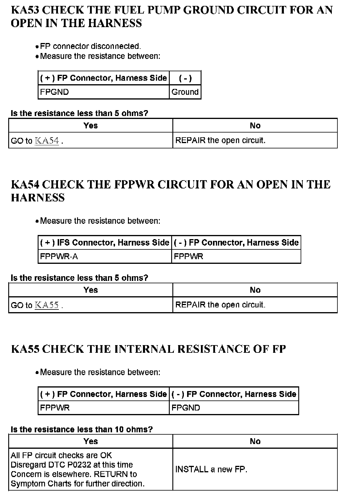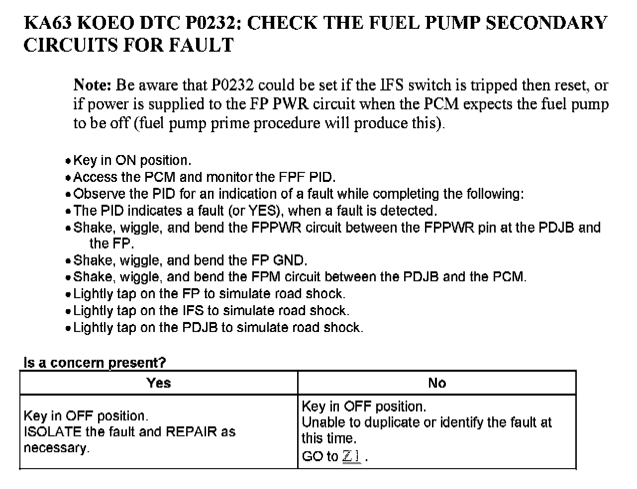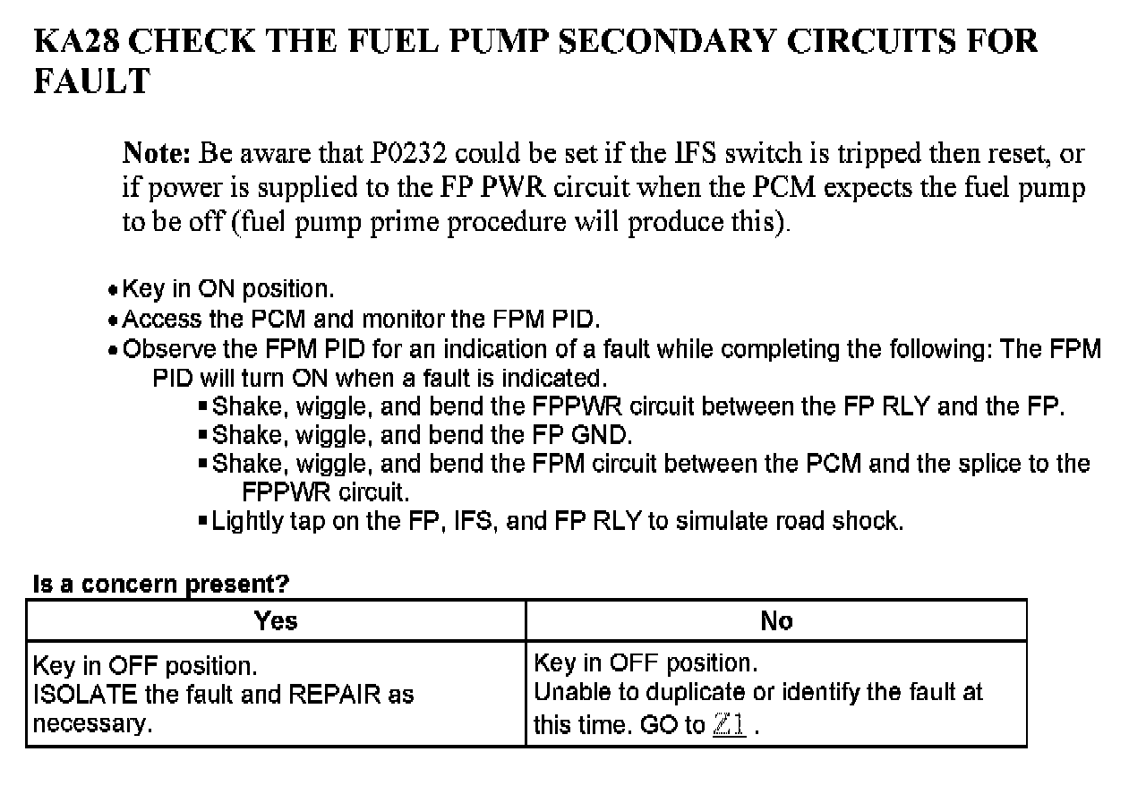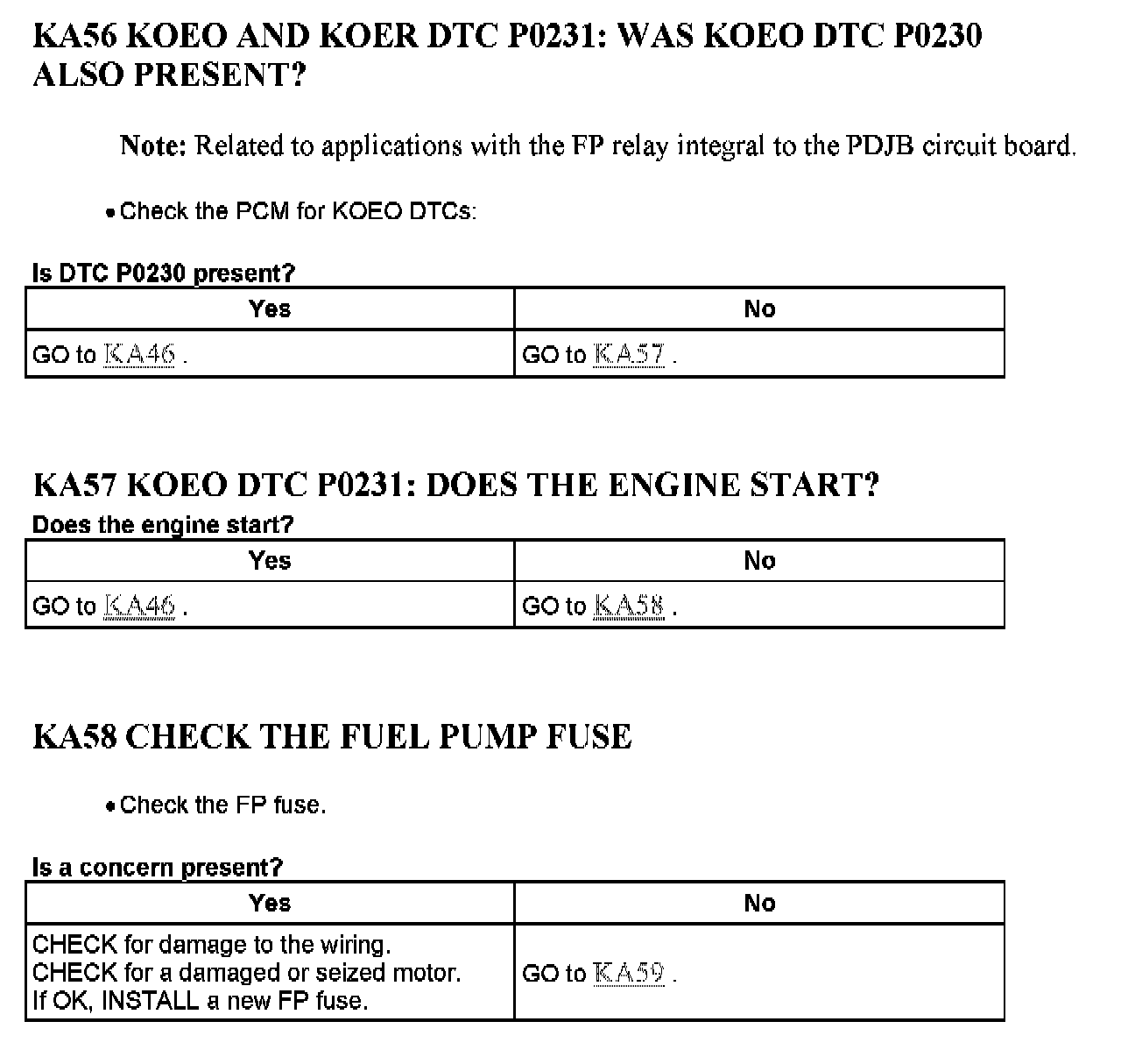 PINPOINT TEST KA: FUEL PUMP (FP) RELAY