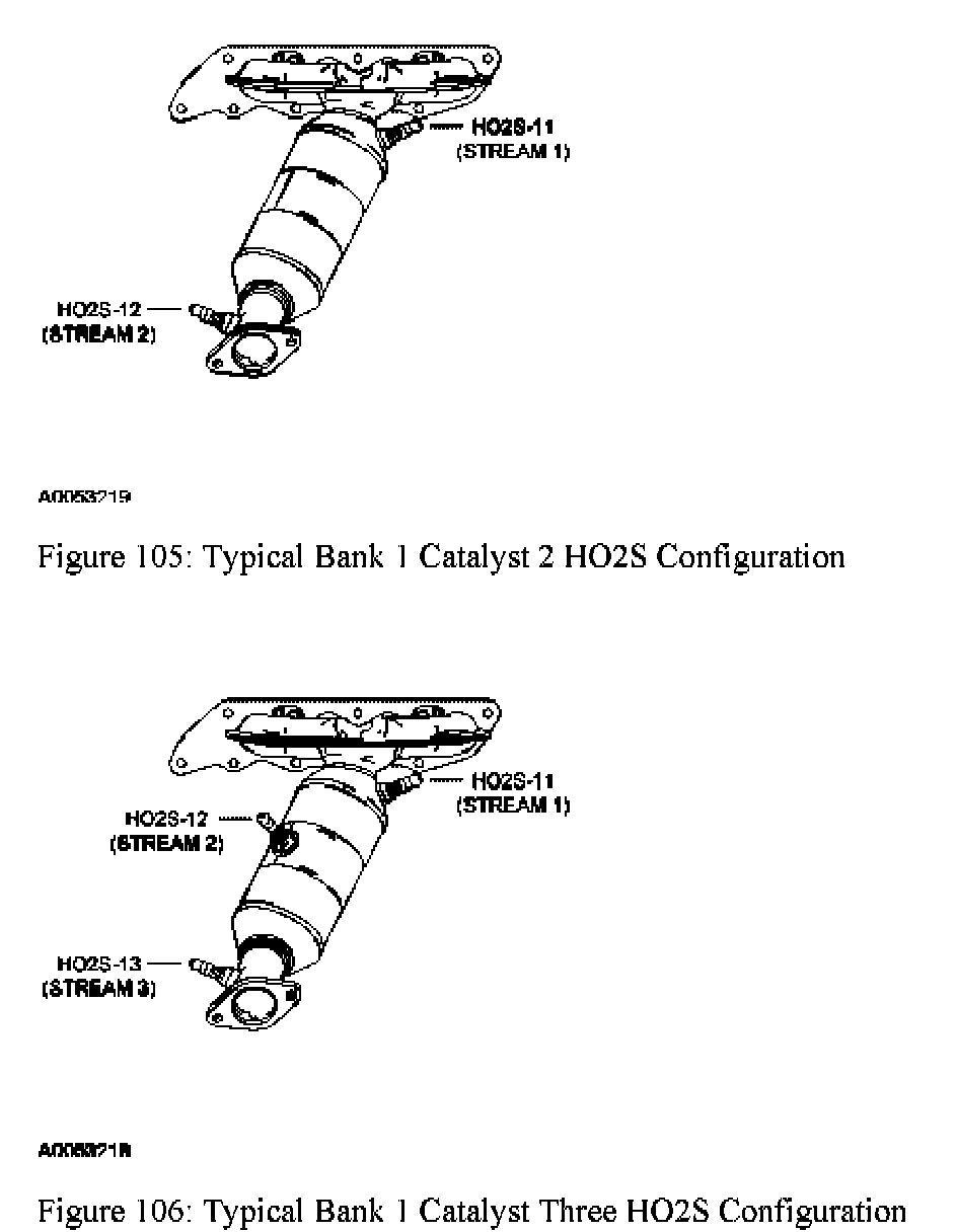 Note: On some partial zero emission vehicles (PZEV) there will be a total of 3 HO2S in the exhaust stream. One near the exhaust manifold (stream 1) one in the middle of the light-off catalyst (stream 2) and the third (stream 3) is mounted afier the light-off catalyst.