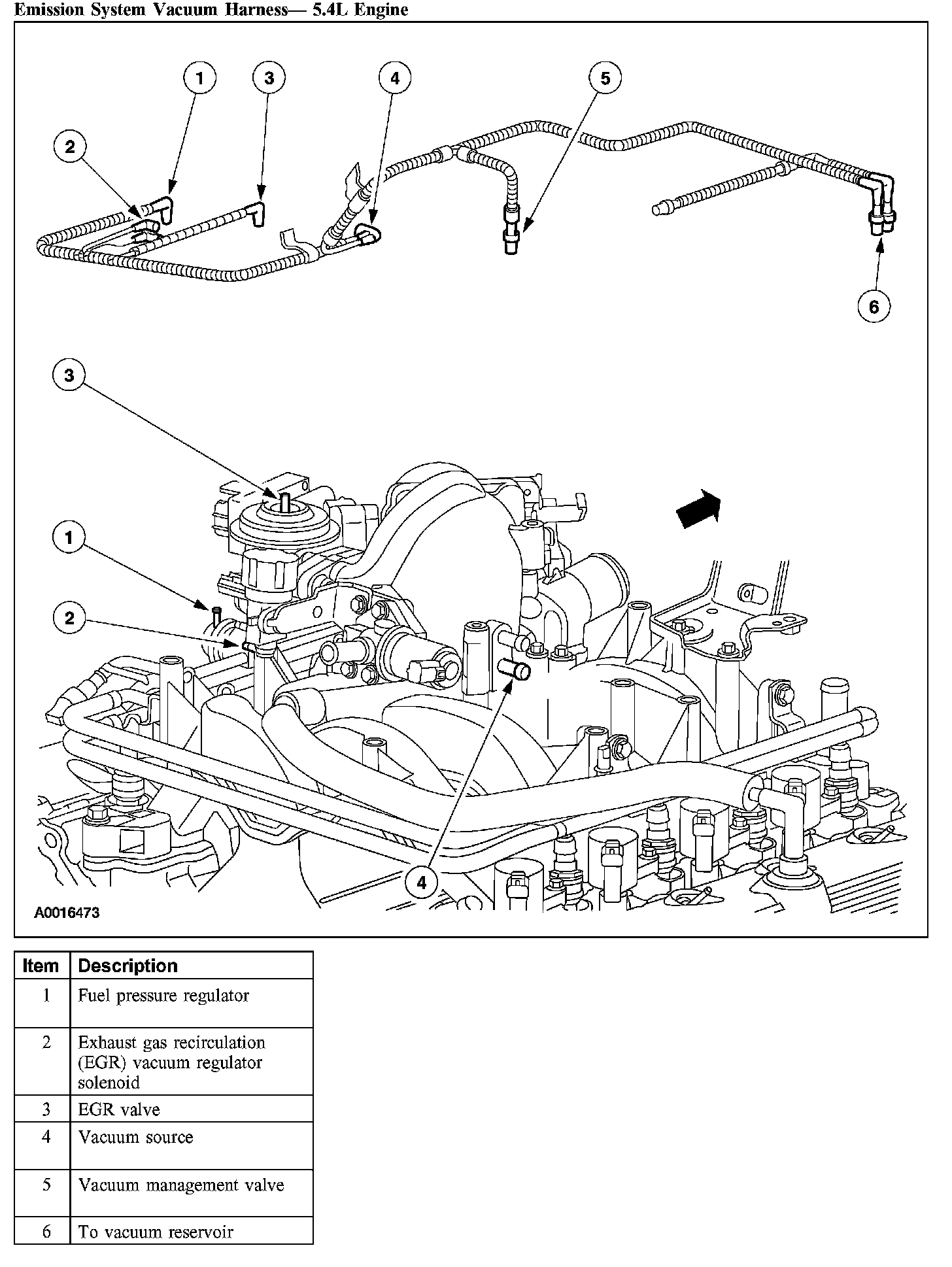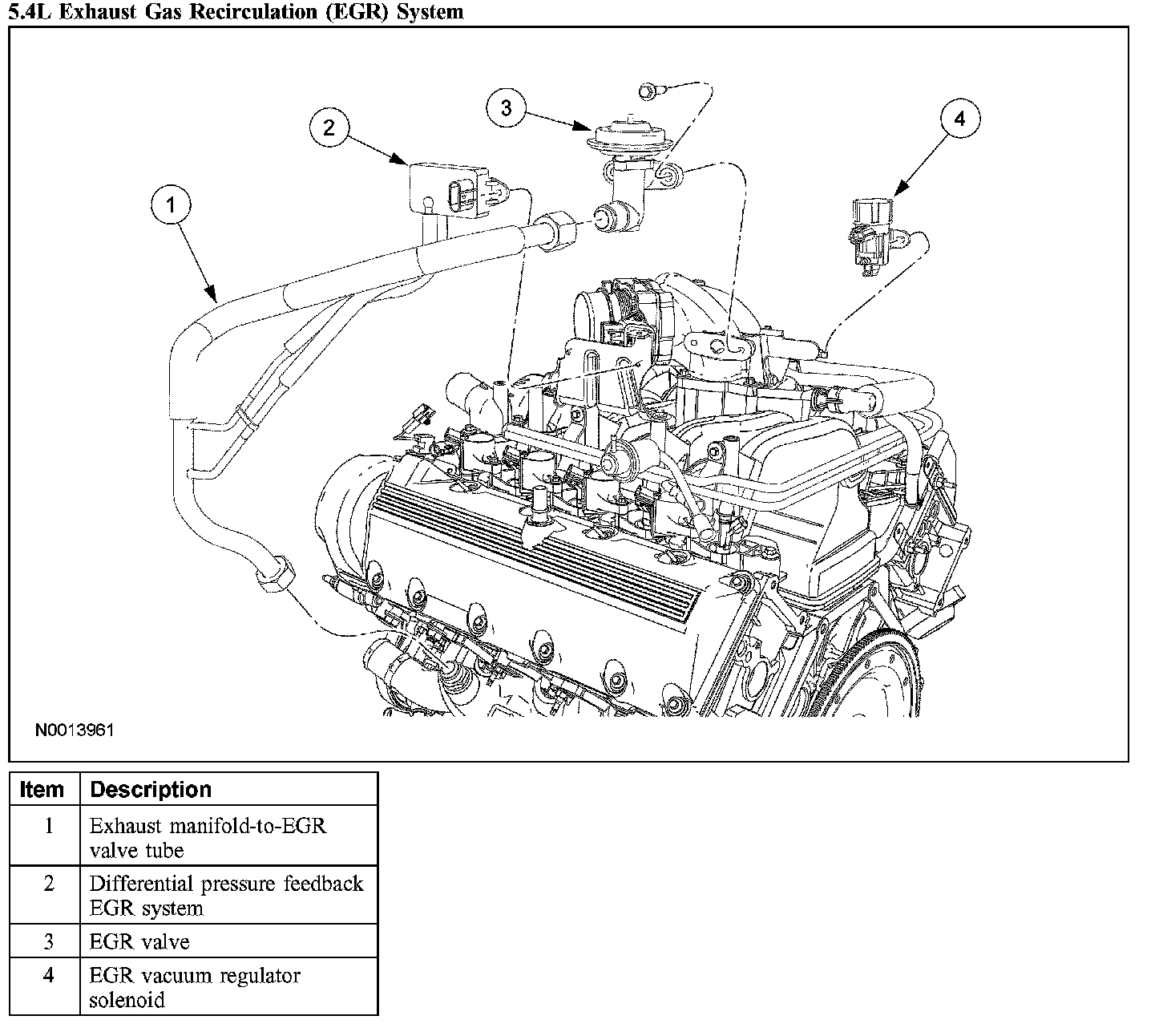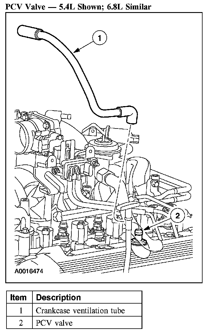 The 5.4L engine is equipped with a positive crankcase ventilation (PCV) system. The function of the PCV system is to circulate blow-by gases from the engine crankcase to the engine intake.