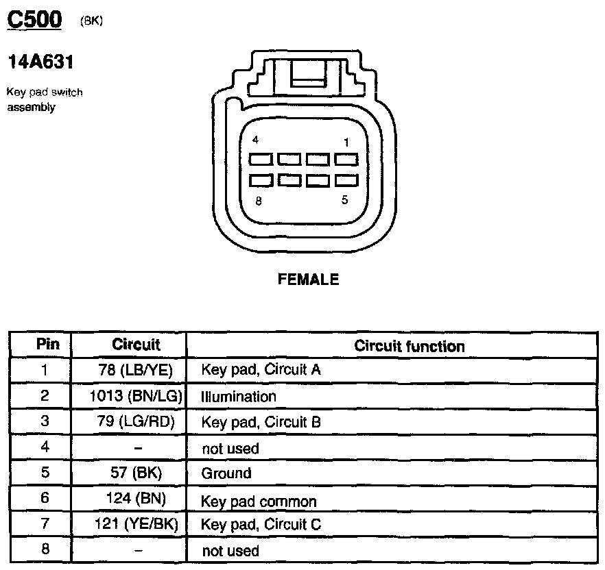 Keyless Entry Key-Pad: Diagrams