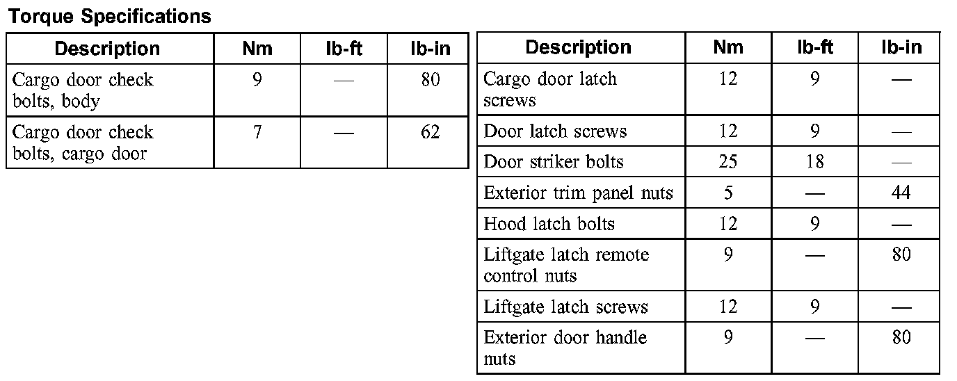 Torque Specifications: