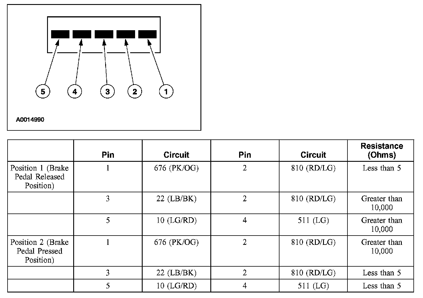 If the resistance is as specified, return to the pinpoint test. Otherwise, install a new BPP switch.
