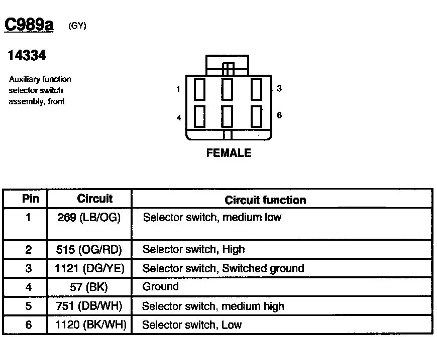 Auxiliary Function Selector Switch Assembly, Front
