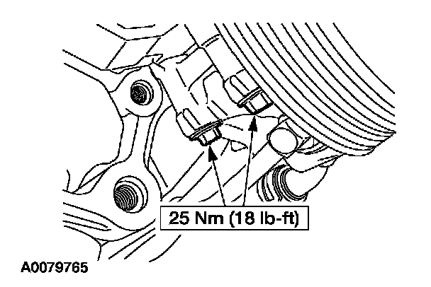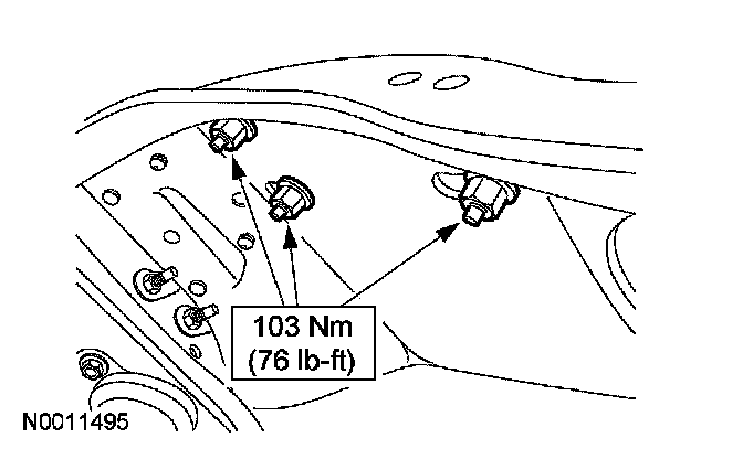 7. Install the new torque converter-to-flywheel retaining nuts.