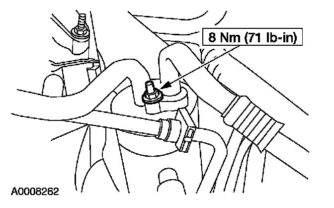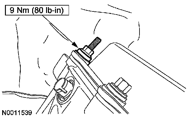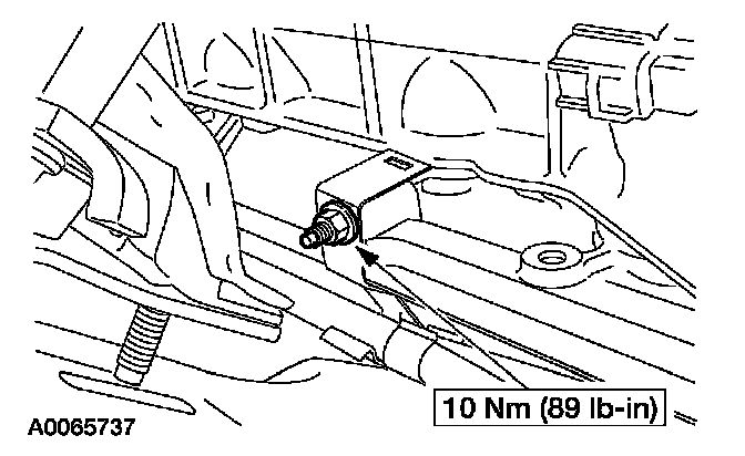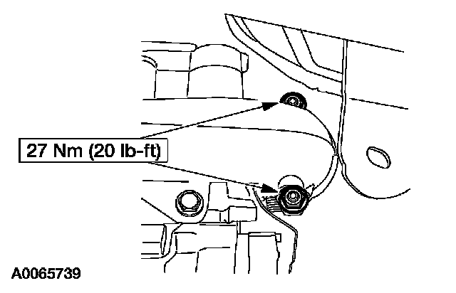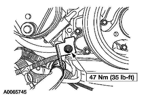 13. Install the transmission cooler tube bracket and nut.