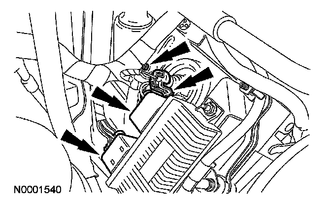 54. Install the upper radiator support and bolts.