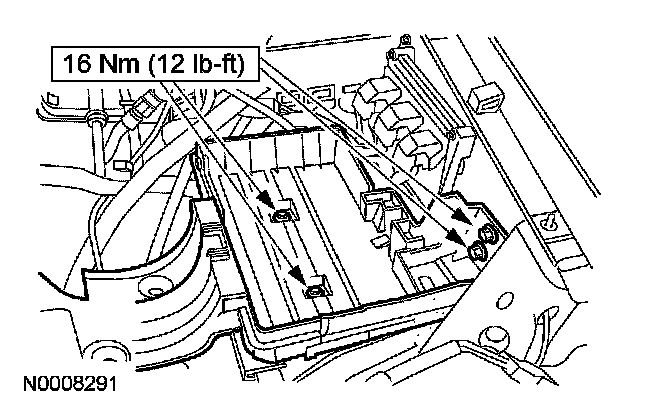 44. Install the battery tray and bolts.