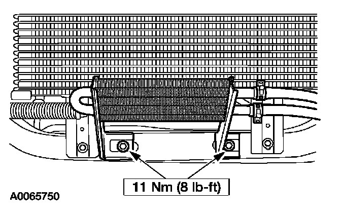 50. Install the transmission oil cooler and bolts.