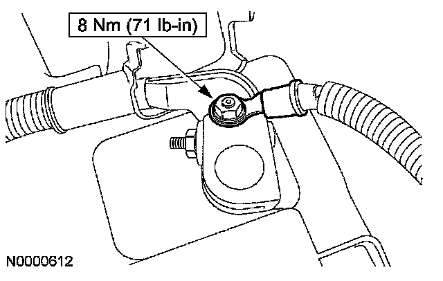 33. Install the battery cable bracket and the nut.