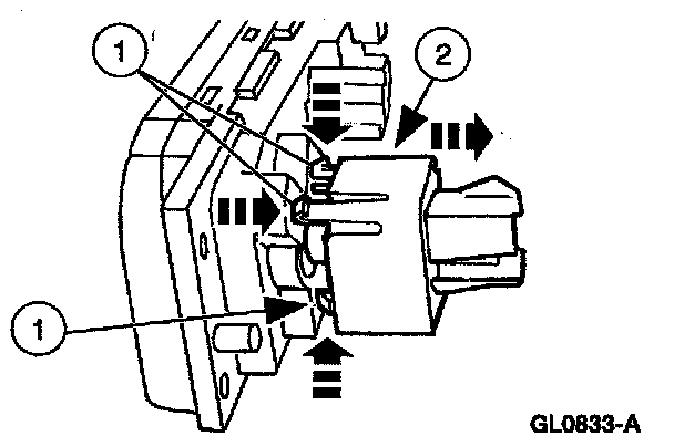 4. Depress the tabs and remove the blower motor control switch.