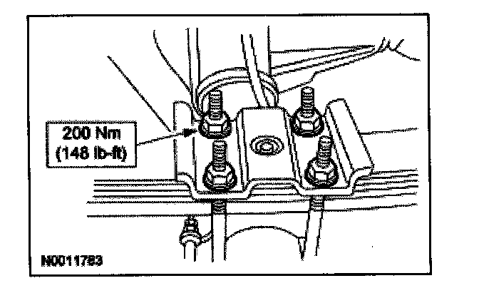 3. Remove and discard the four nuts and two U-bolts to allow the rear axle to separate from the rear spring.