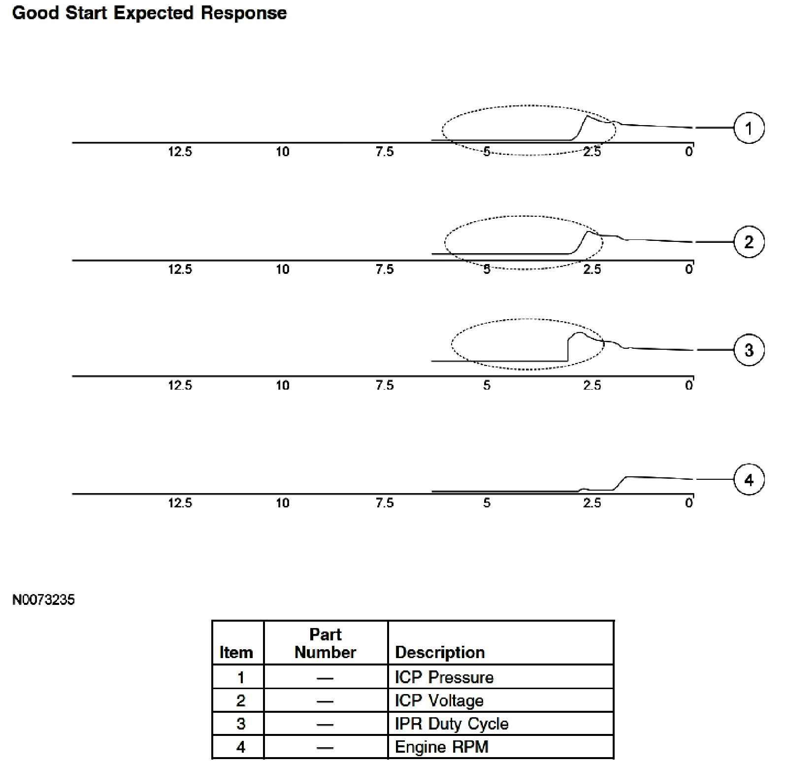 ^ ICP should reach 3.5 MPa (500 psi) within a few seconds of cranking engine.