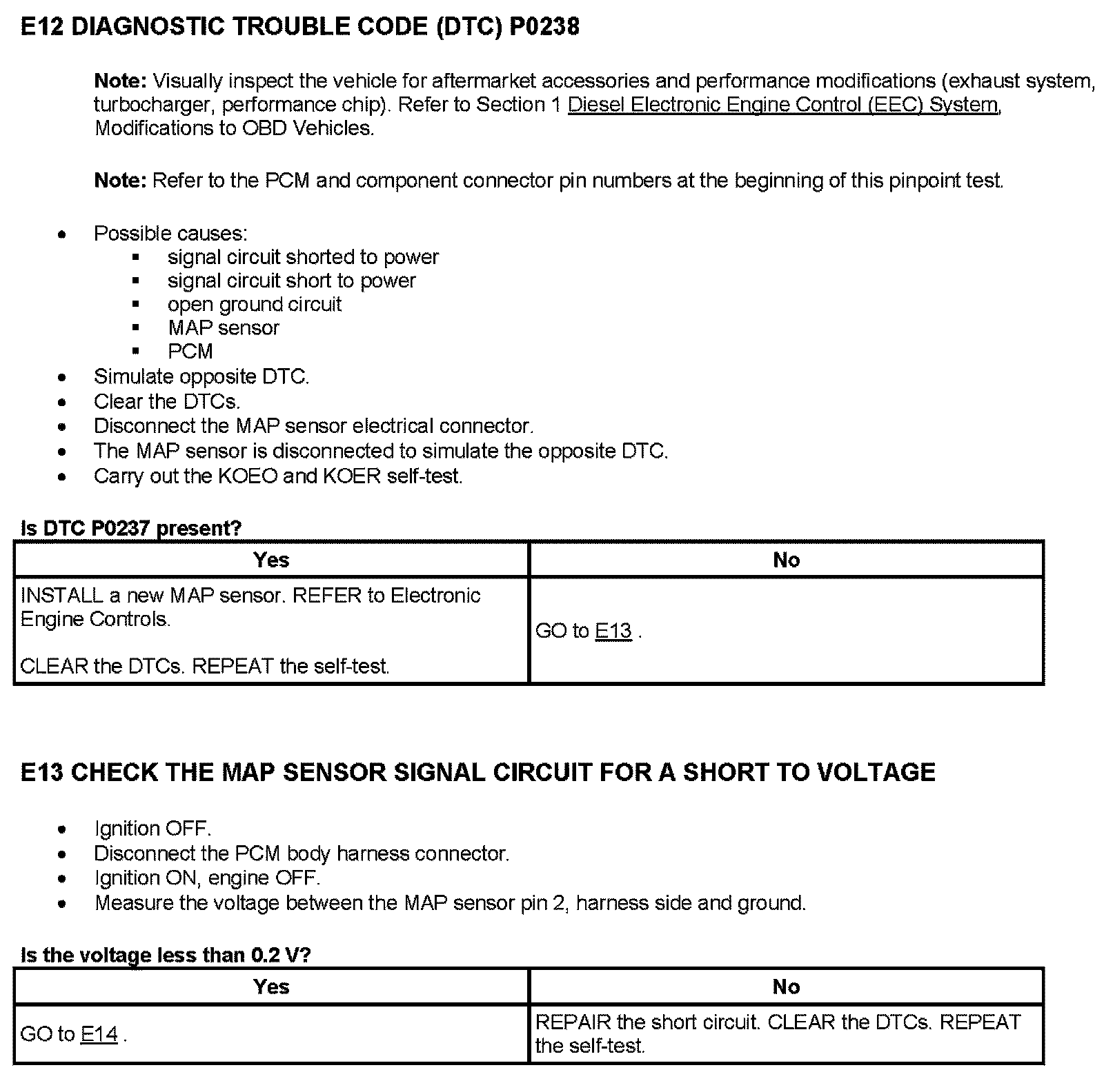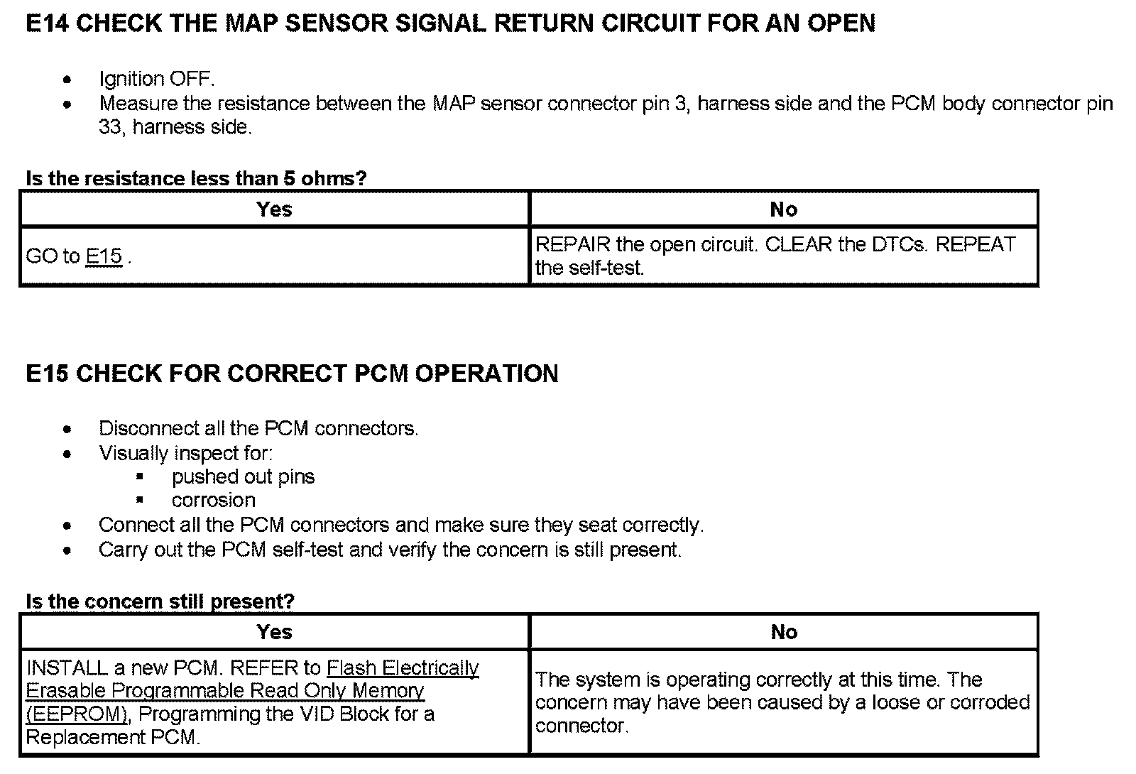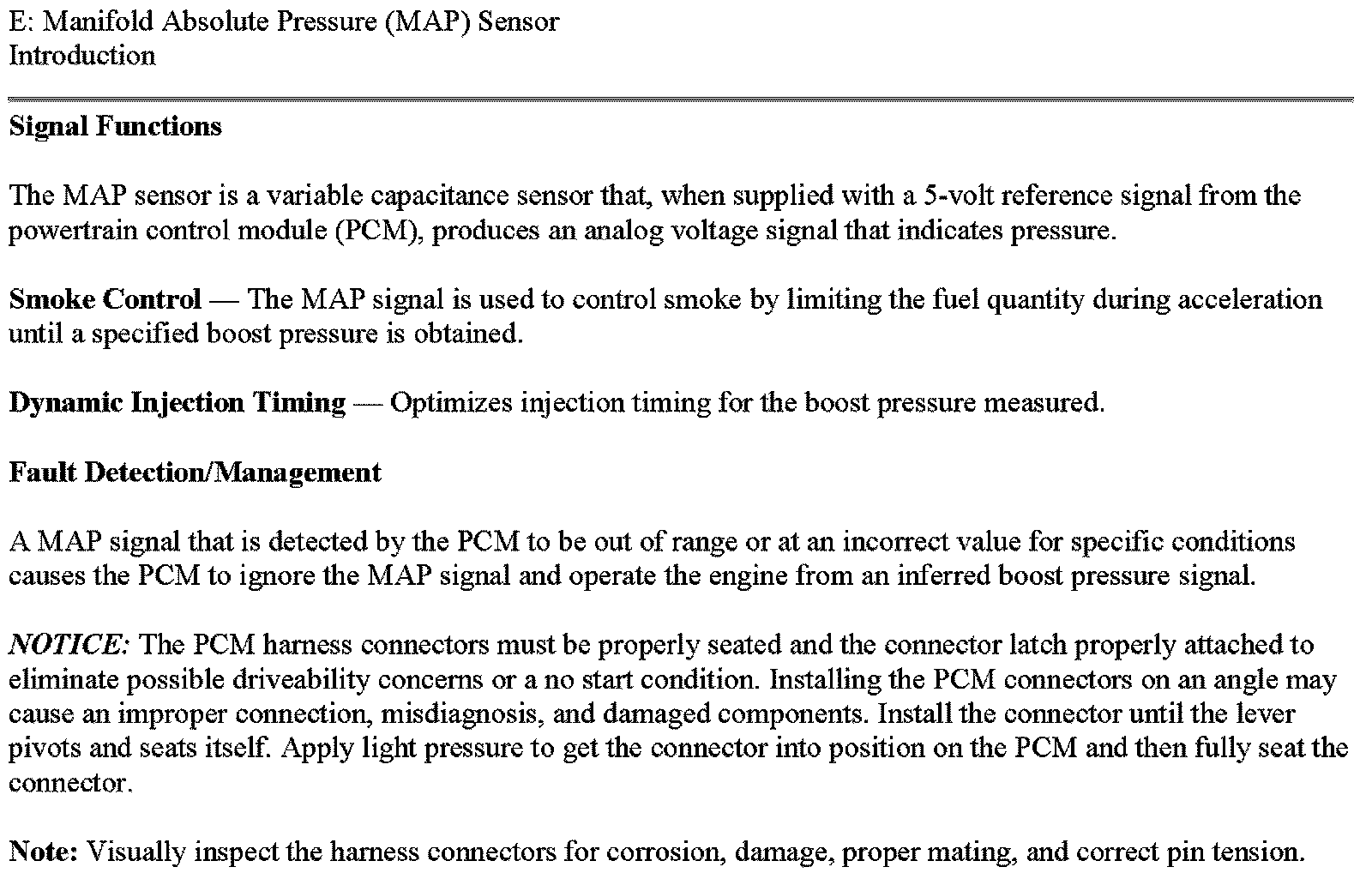 PINPOINT TEST E: MANIFOLD ABSOLUTE PRESSURE (MAP) SENSOR
