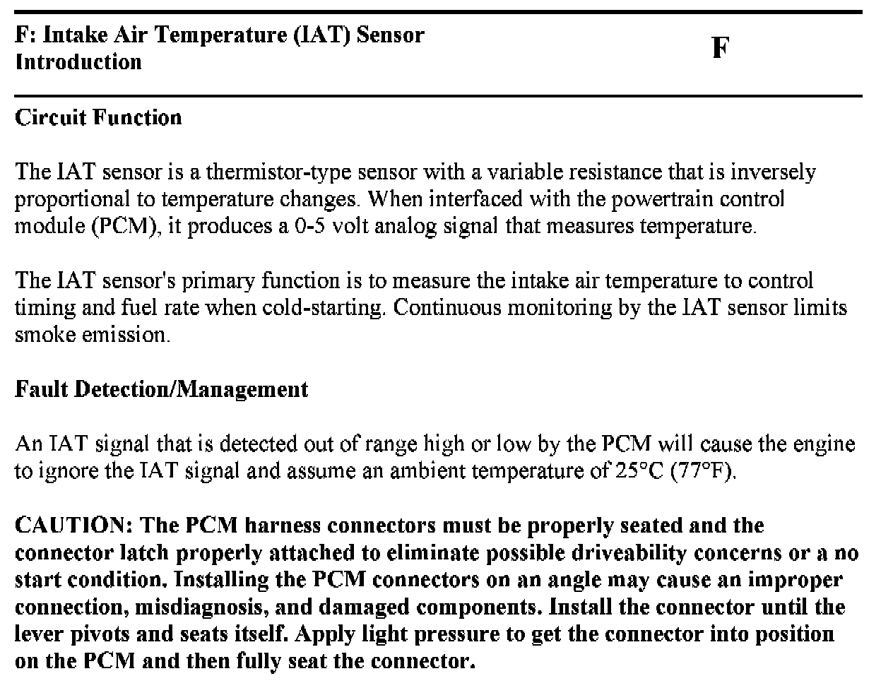 PINPOINT TEST F: INTAKE AIR TEMPERATURE (IAT) SENSOR