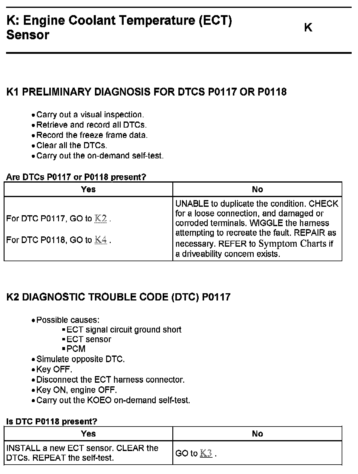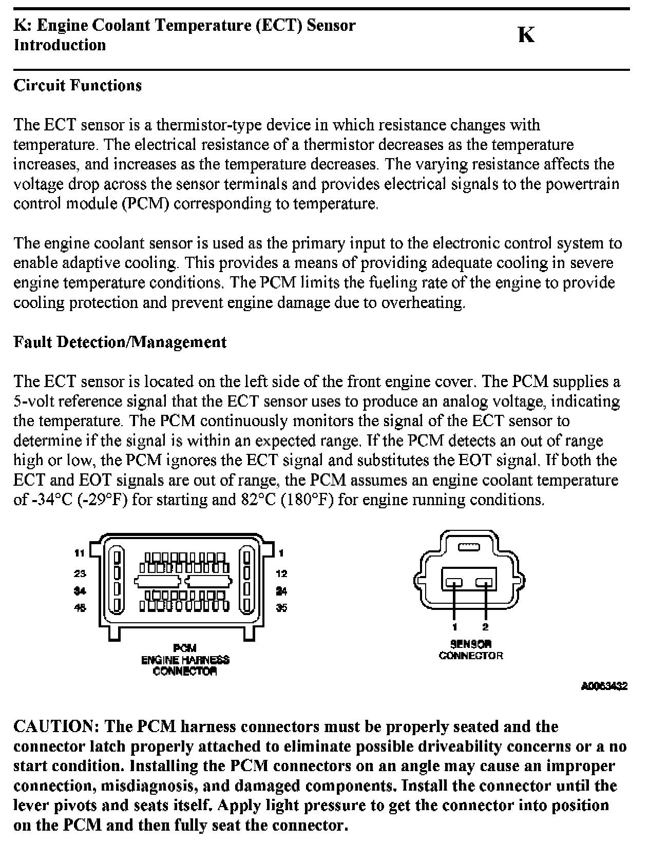 PINPOINT TEST K: ENGINE COOLANT TEMPERATURE (ECT) SENSOR