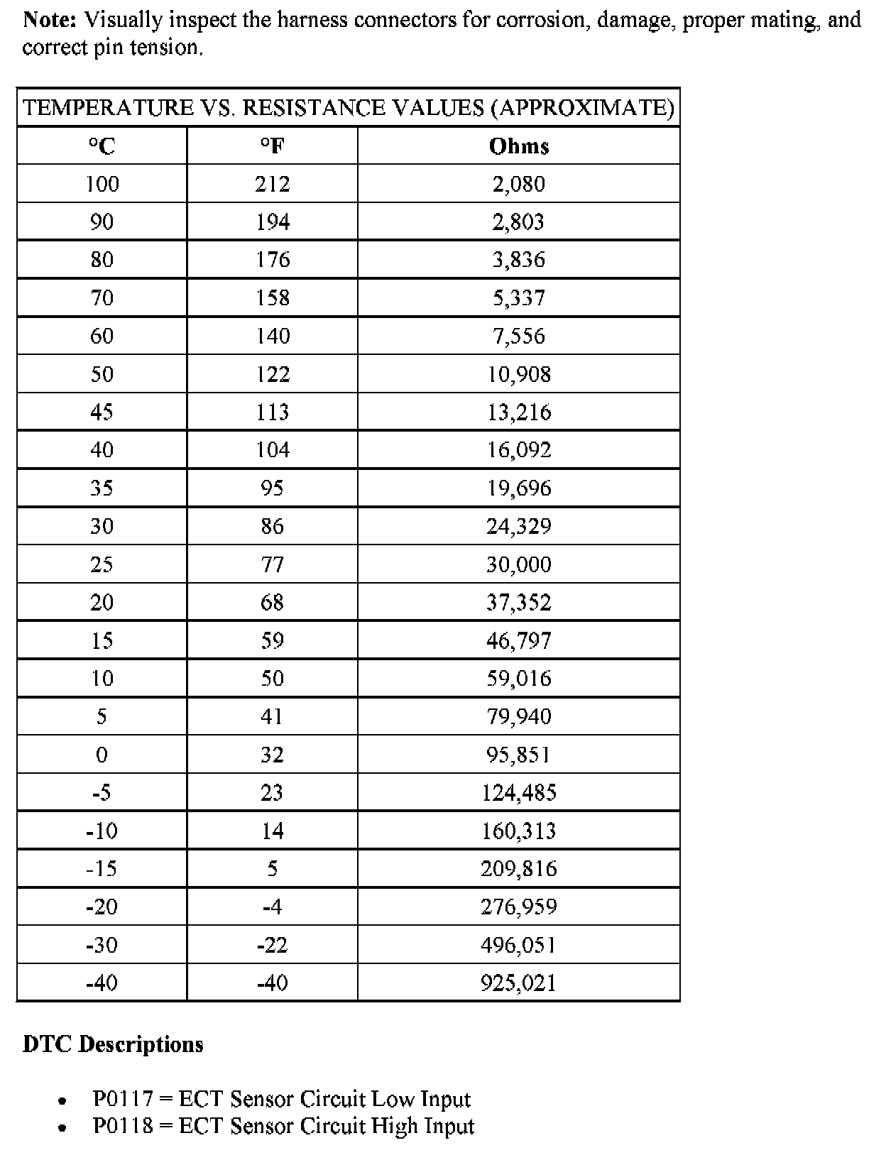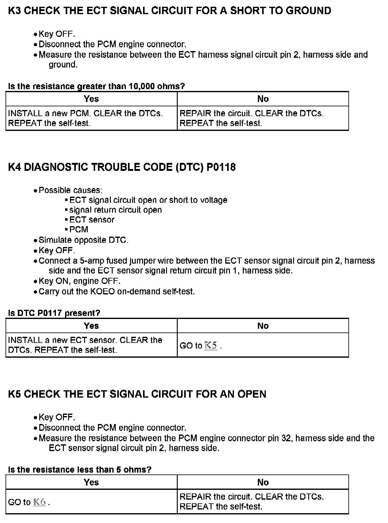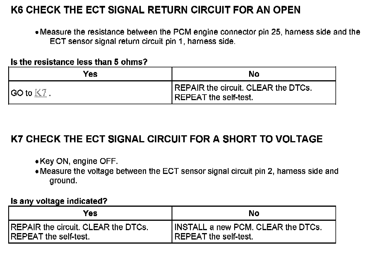 Test K: Engine Coolant Temperature (ECT) Sensor