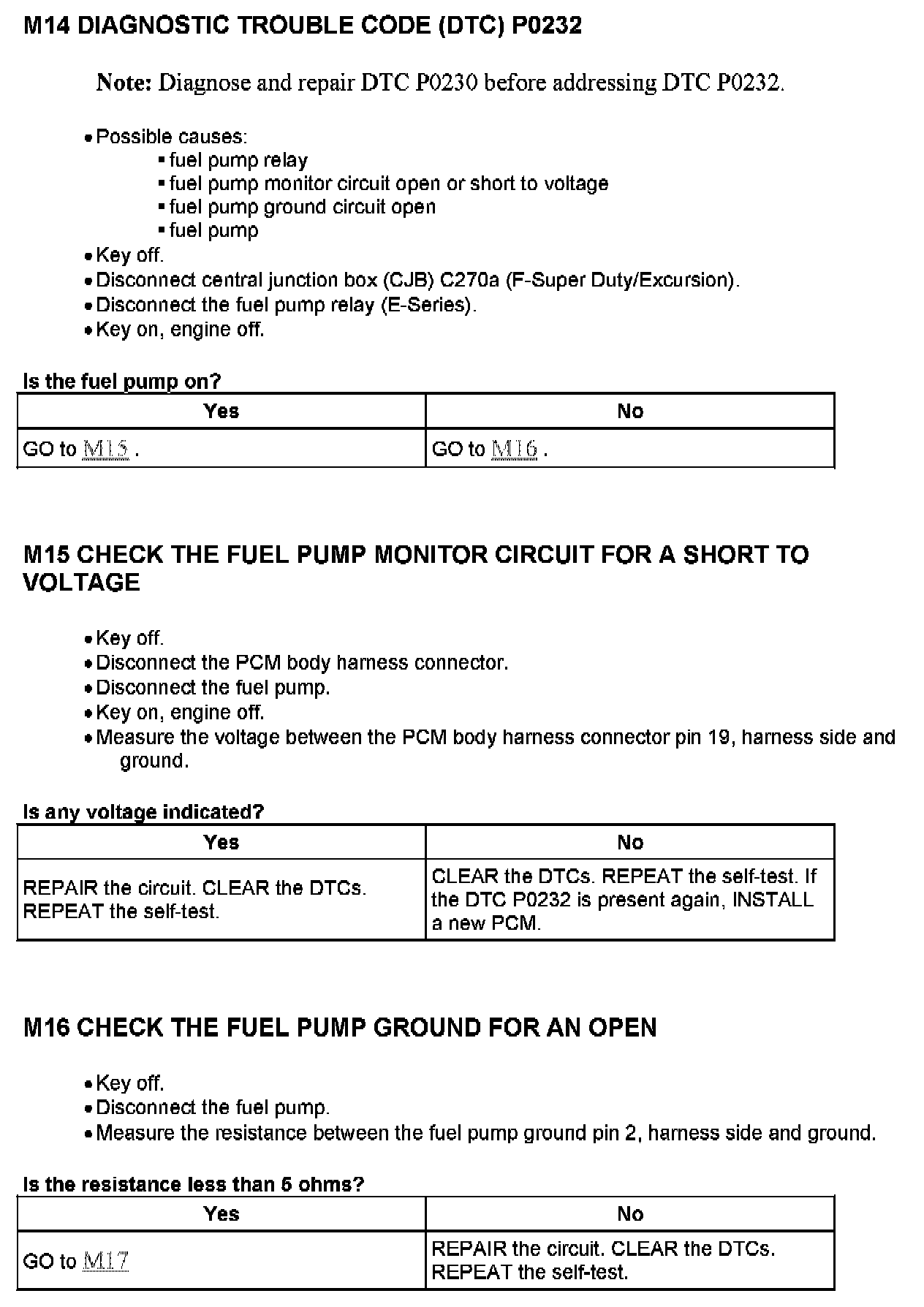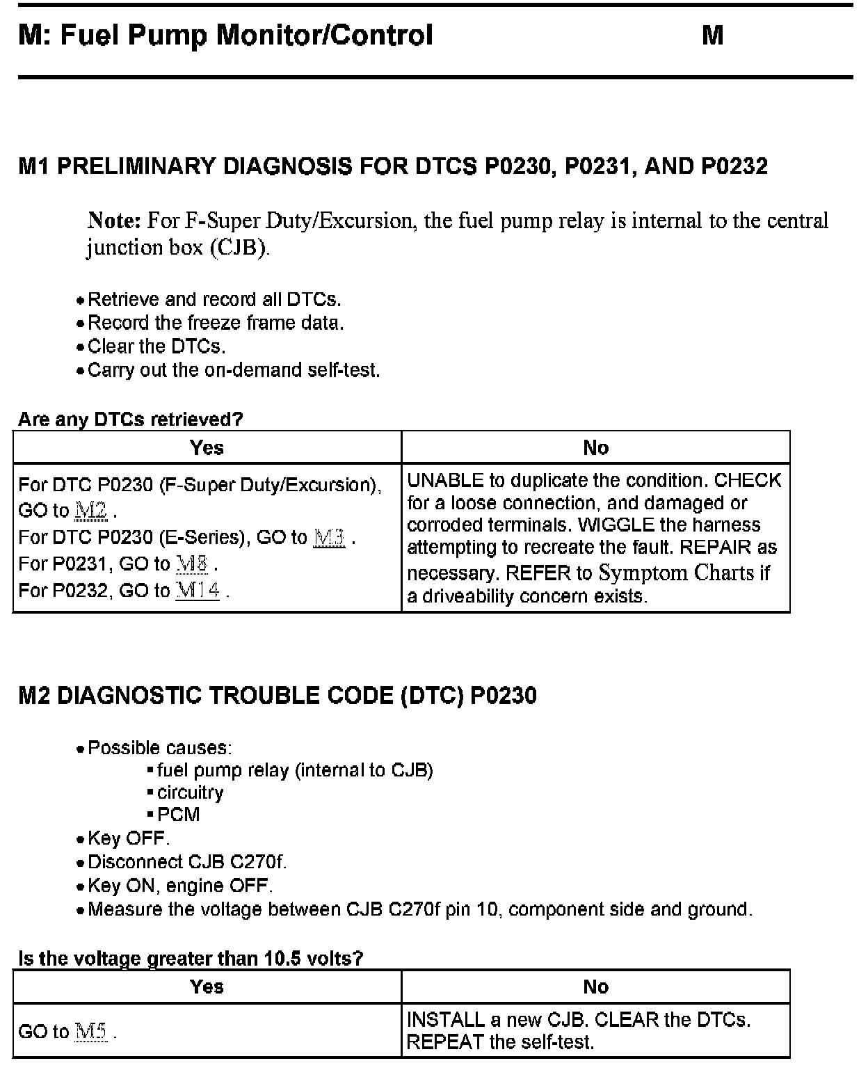 PINPOINT TEST M: FUEL PUMP MONITOR/CONTROL