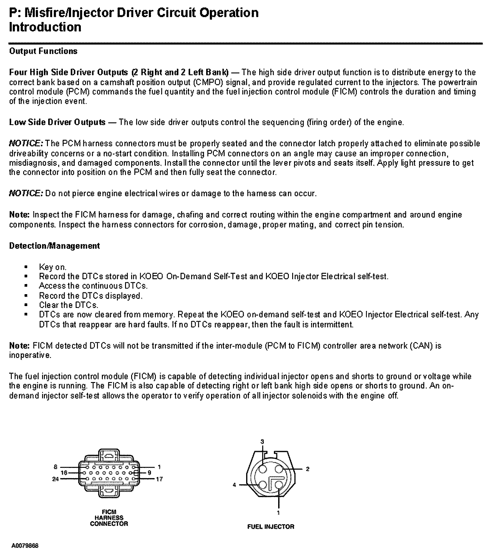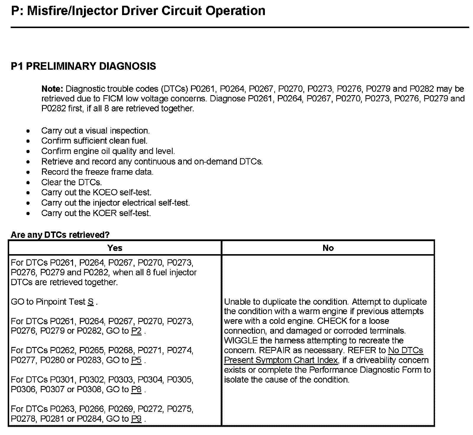PINPOINT TEST P: MISFIRE/INJECTOR DRIVER CIRCUIT OPERATION