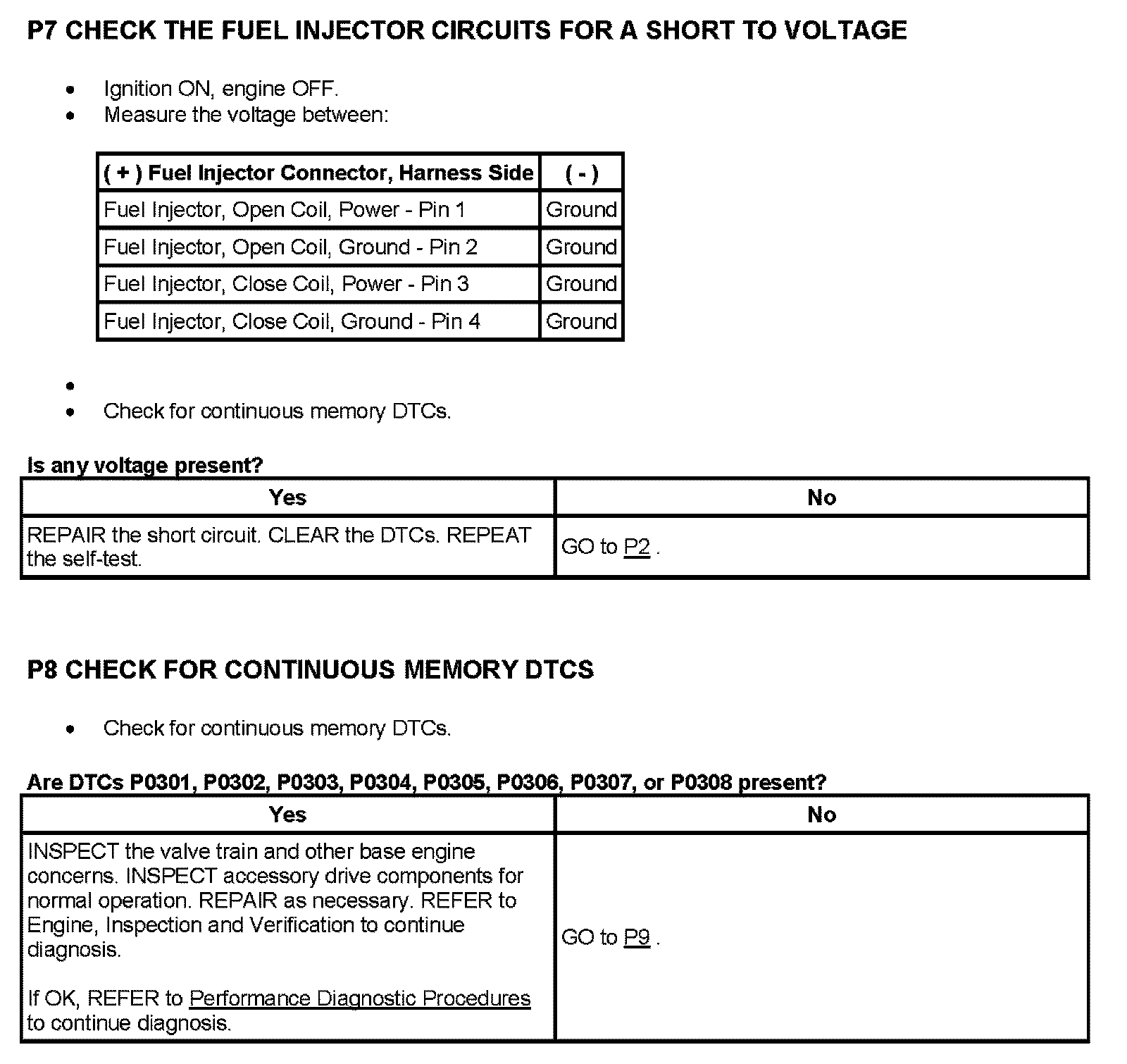 Test P: Misfire/Injector Driver Circuit Operation