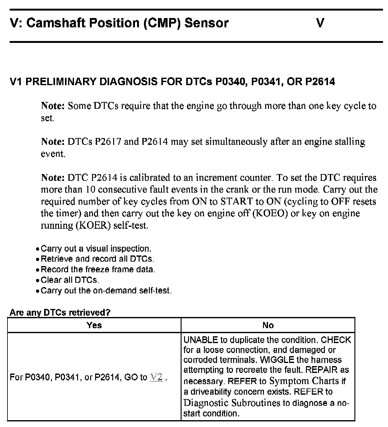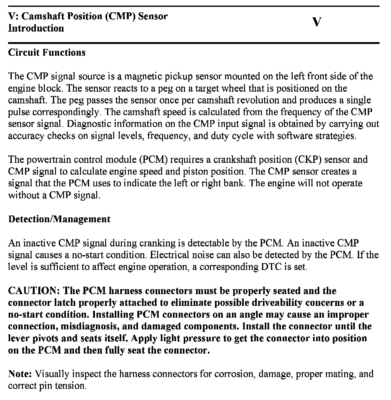 Test V: Camshaft Position (CMP) Sensor