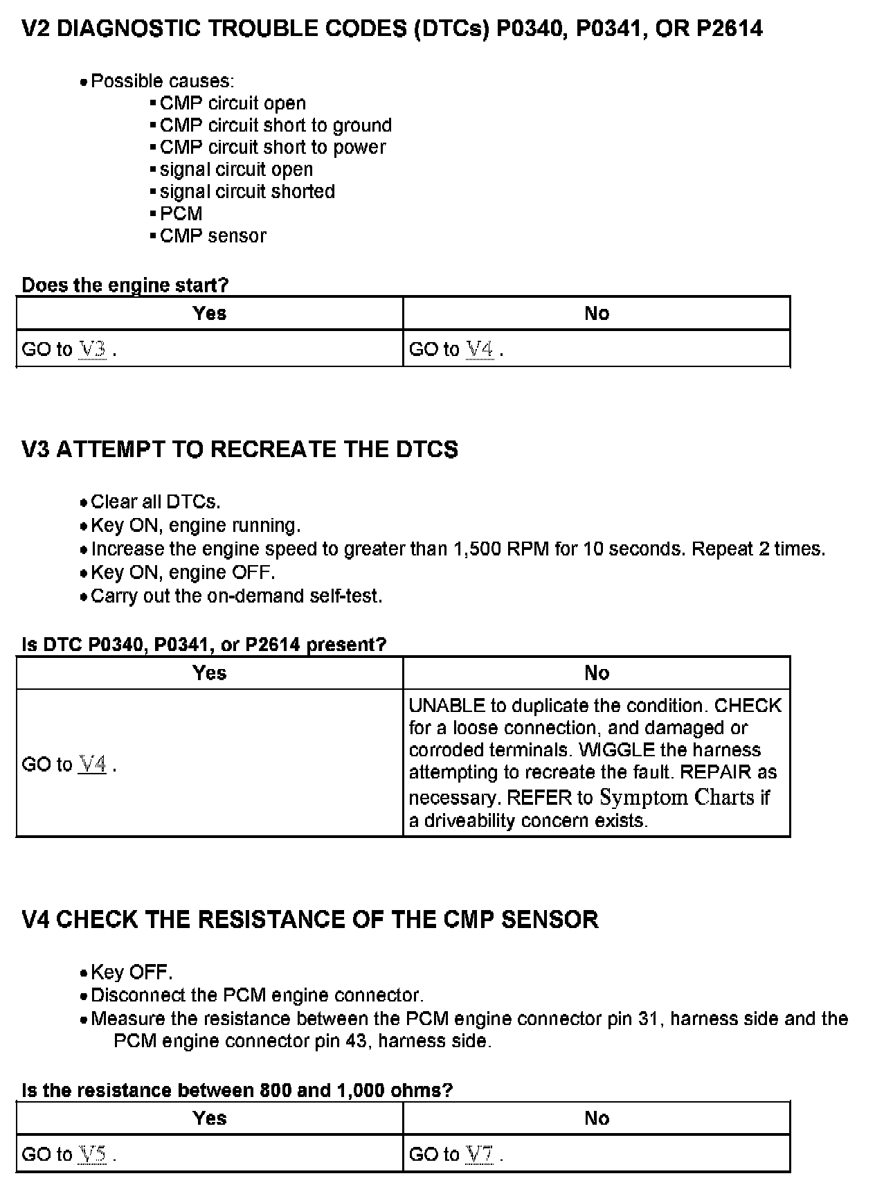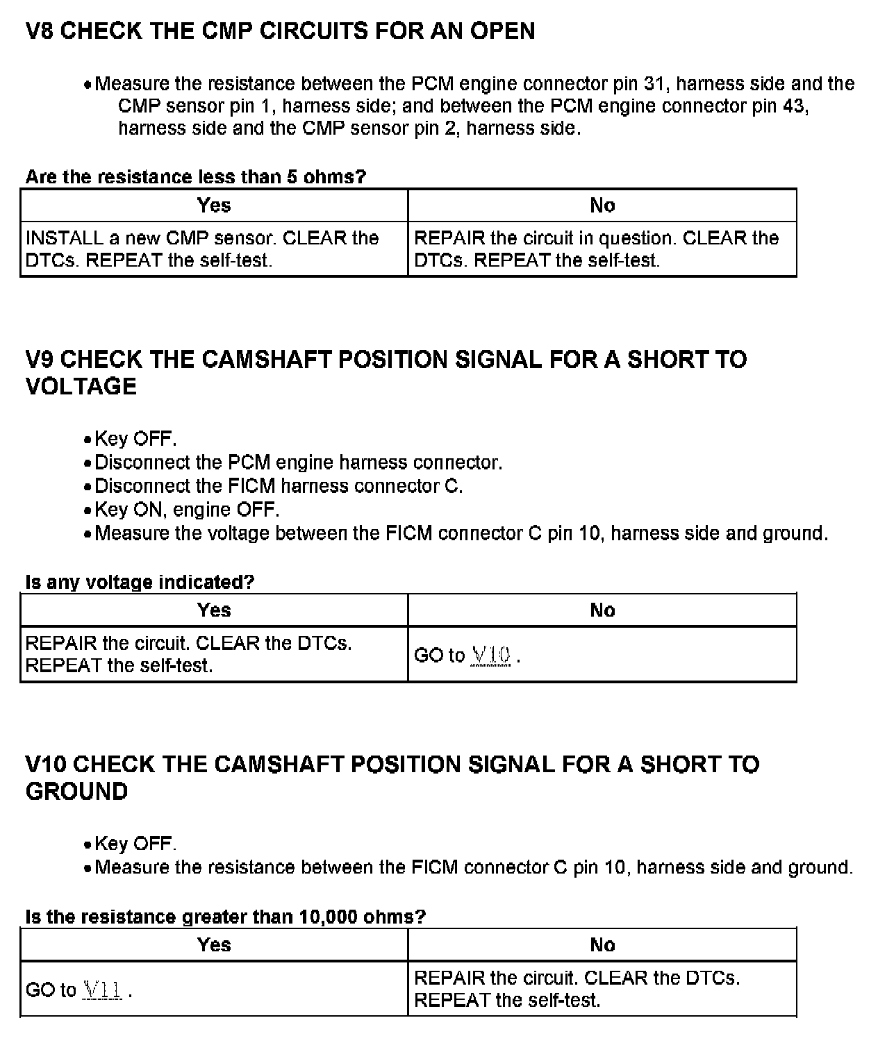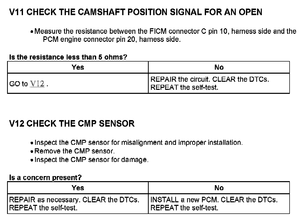 PINPOINT TEST V: CAMSHAFT POSITION (CMP) SENSOR