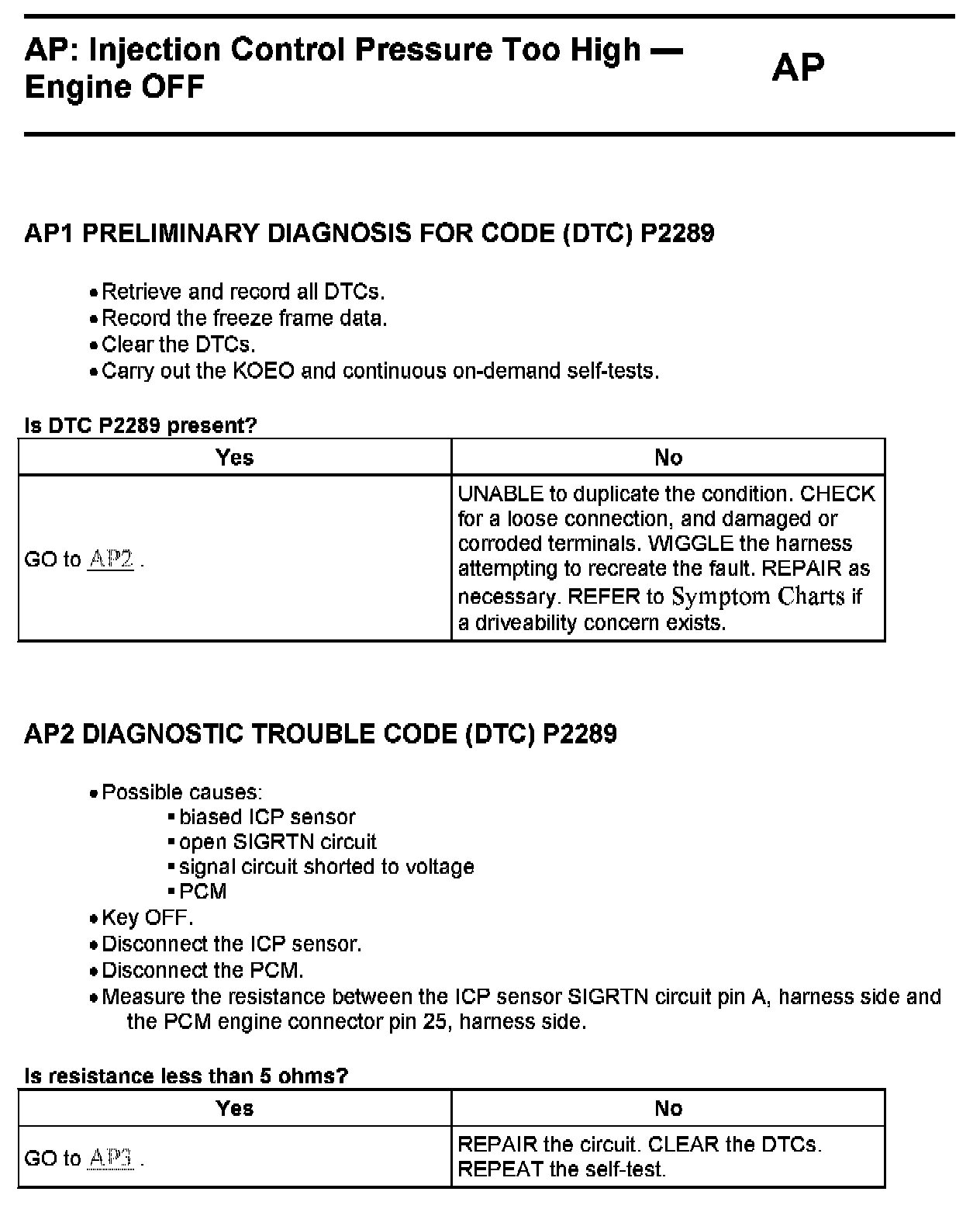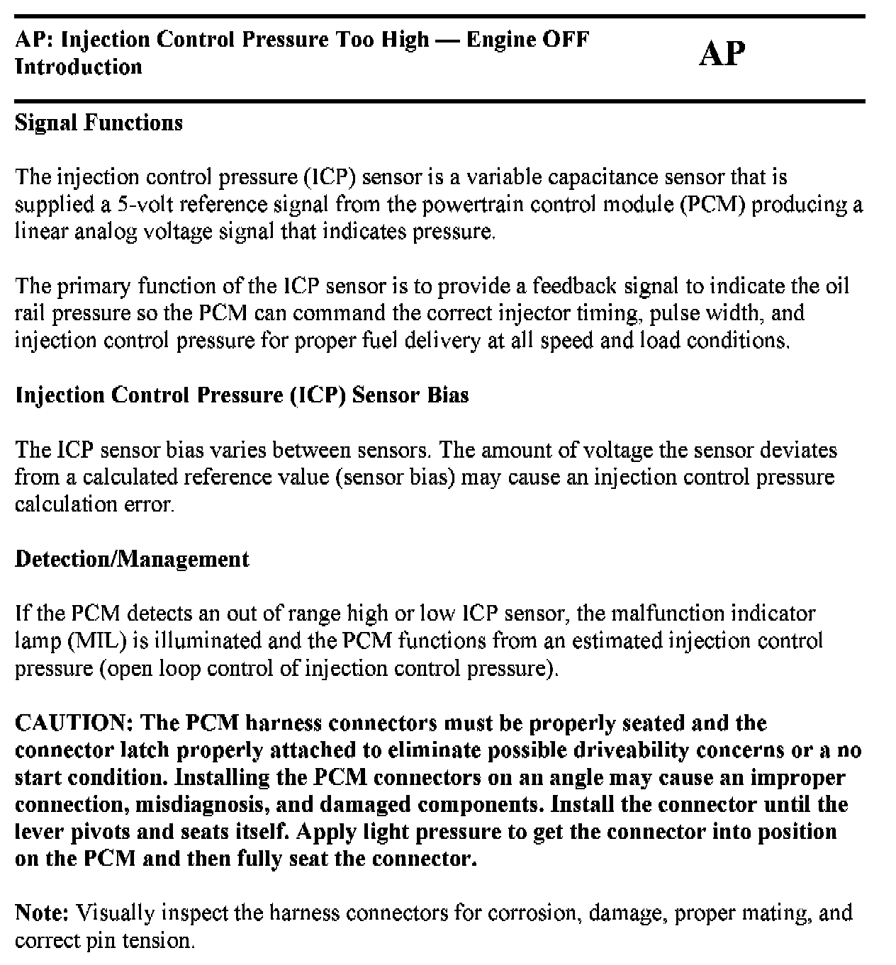 Tests AP: Injection Control Pressure Too High - Engine Off