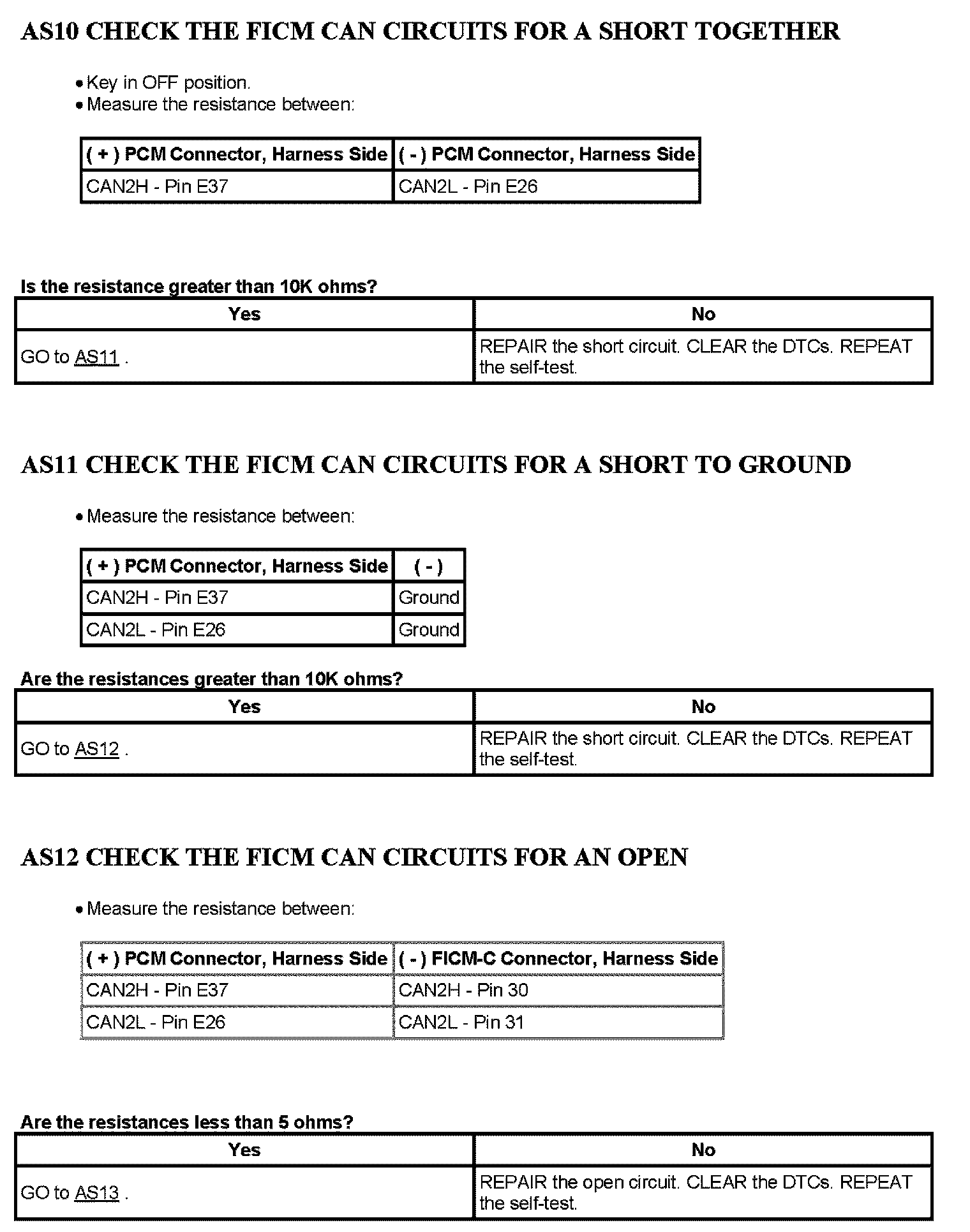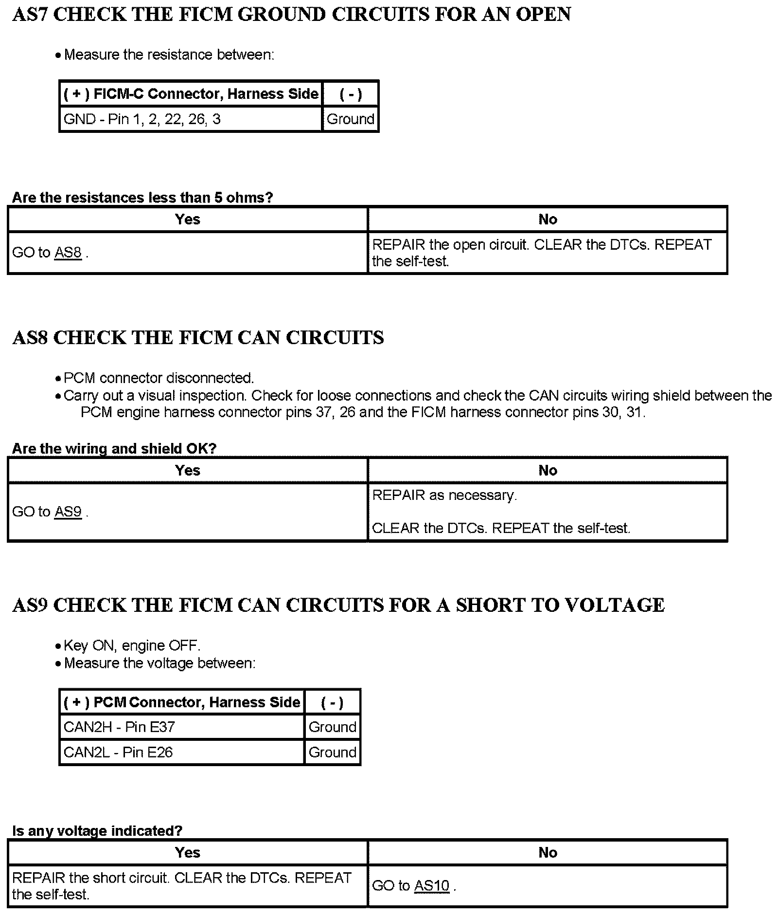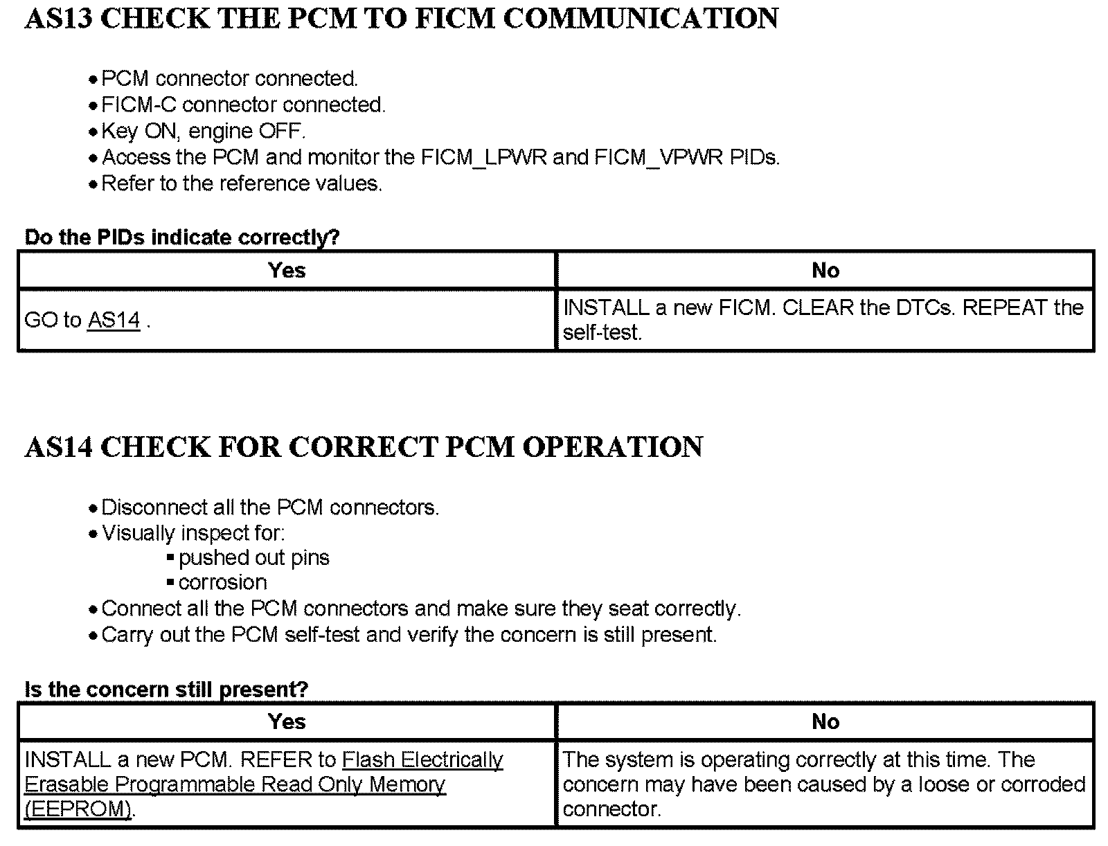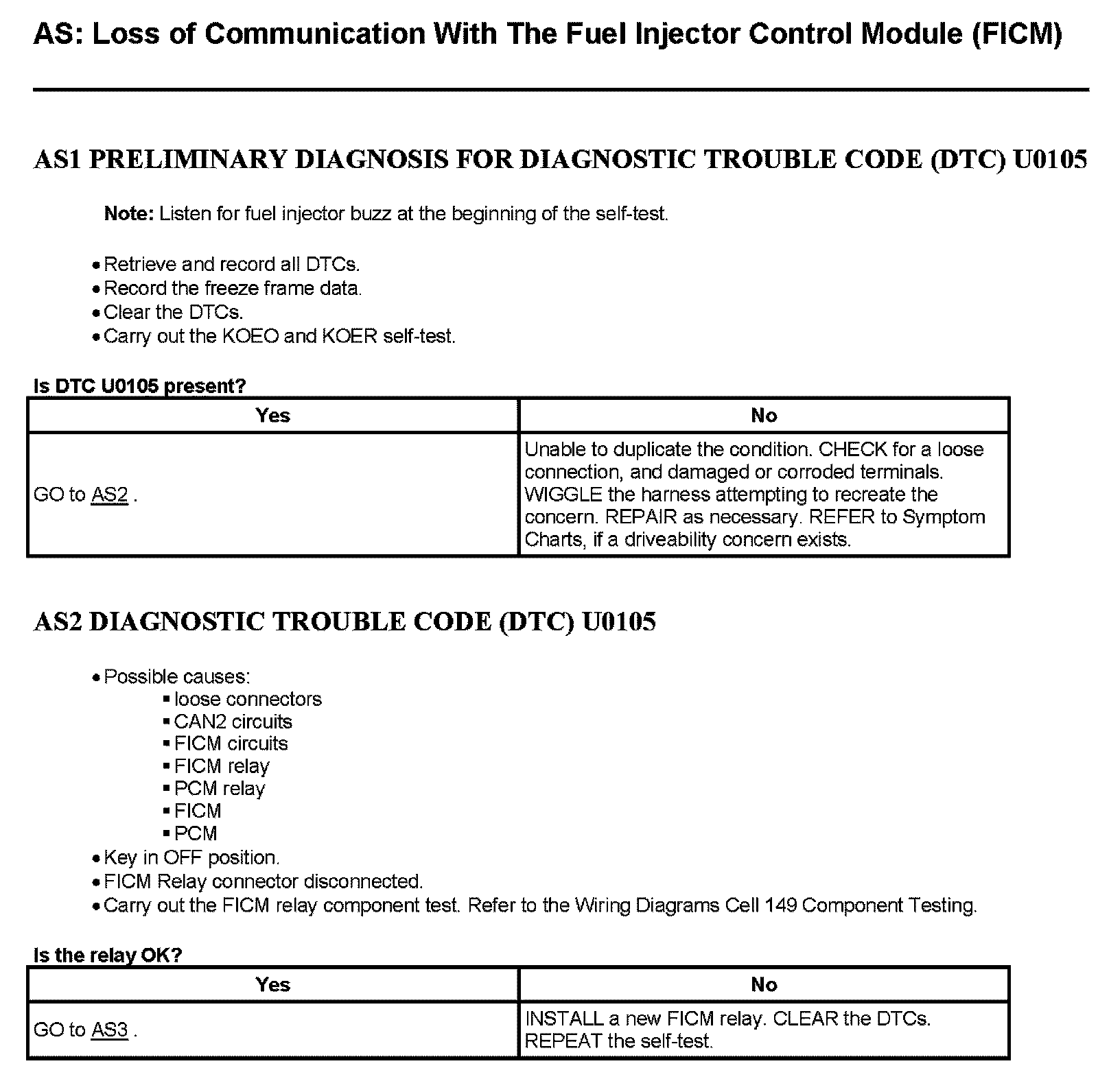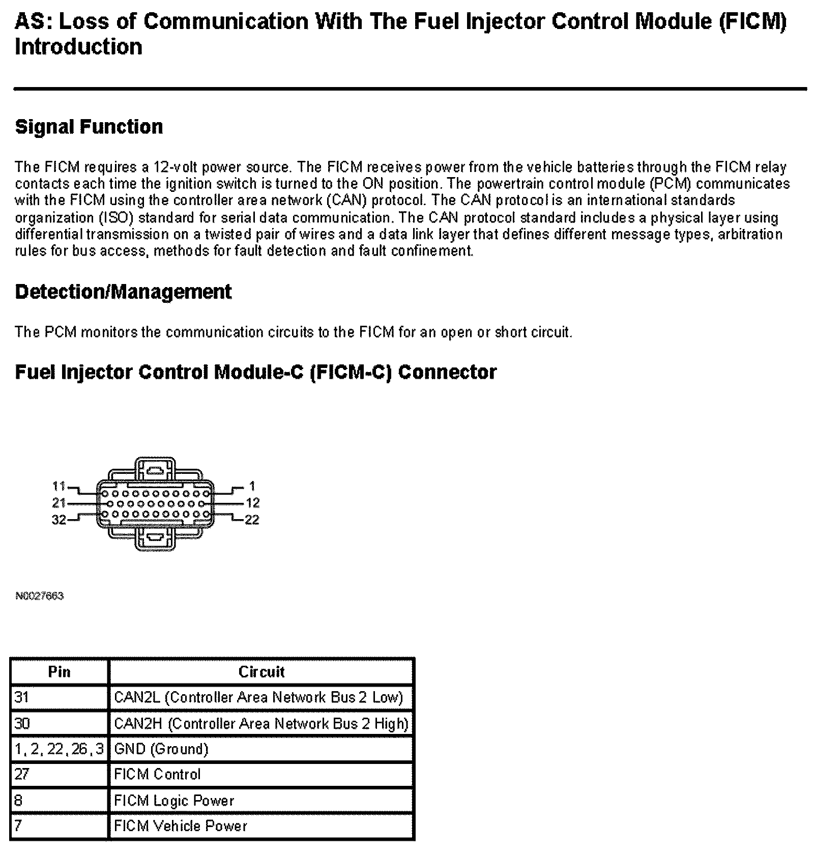 Tests AS: Loss of Communication With The Fuel Injection Control Module (FICM)