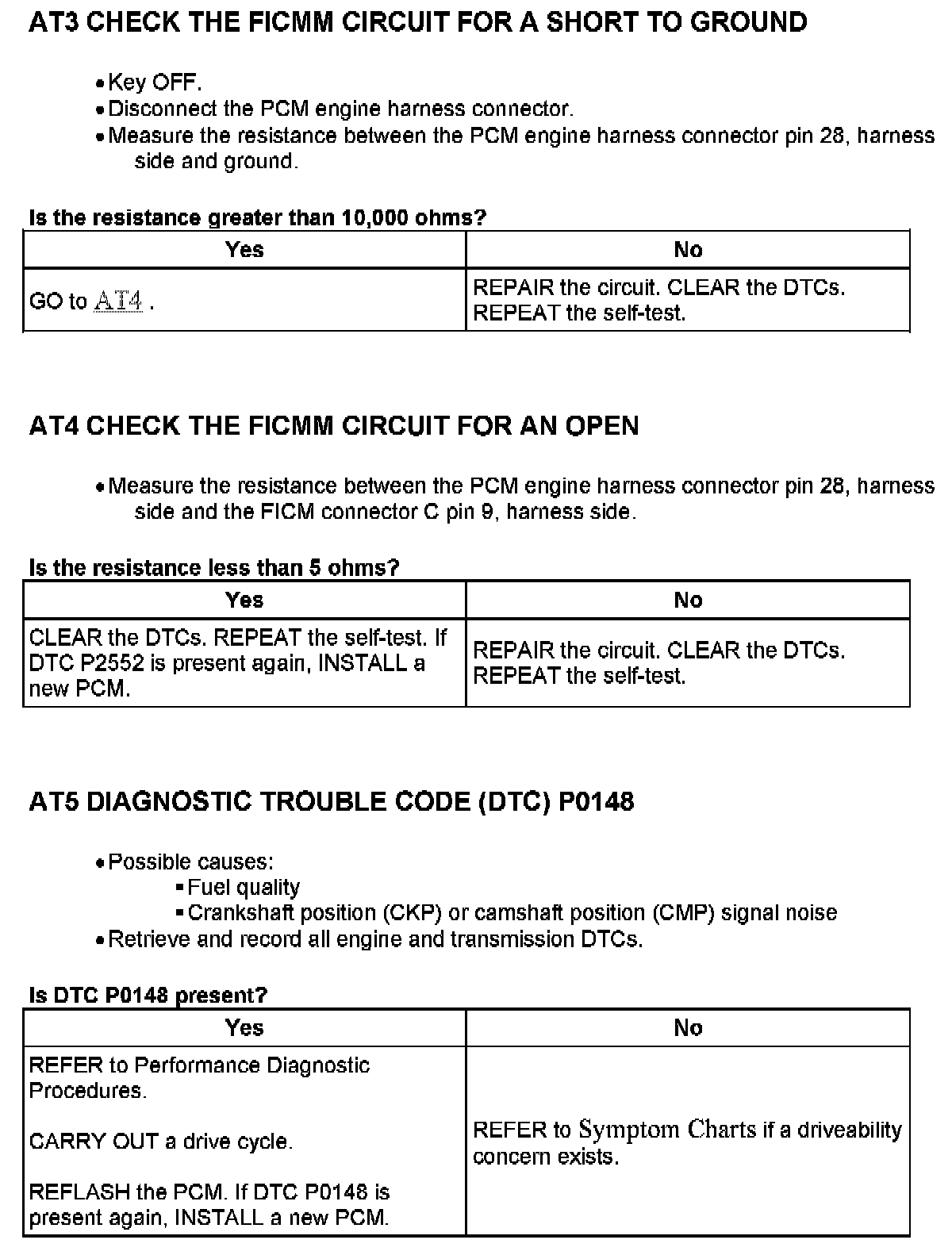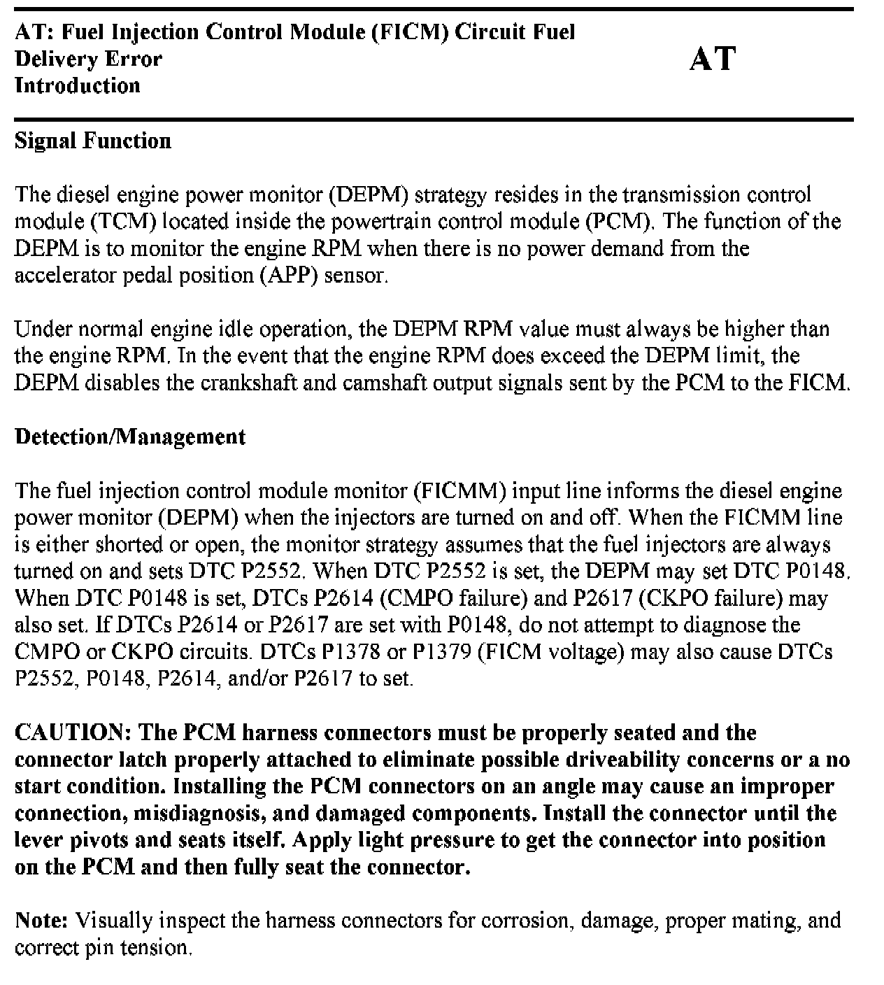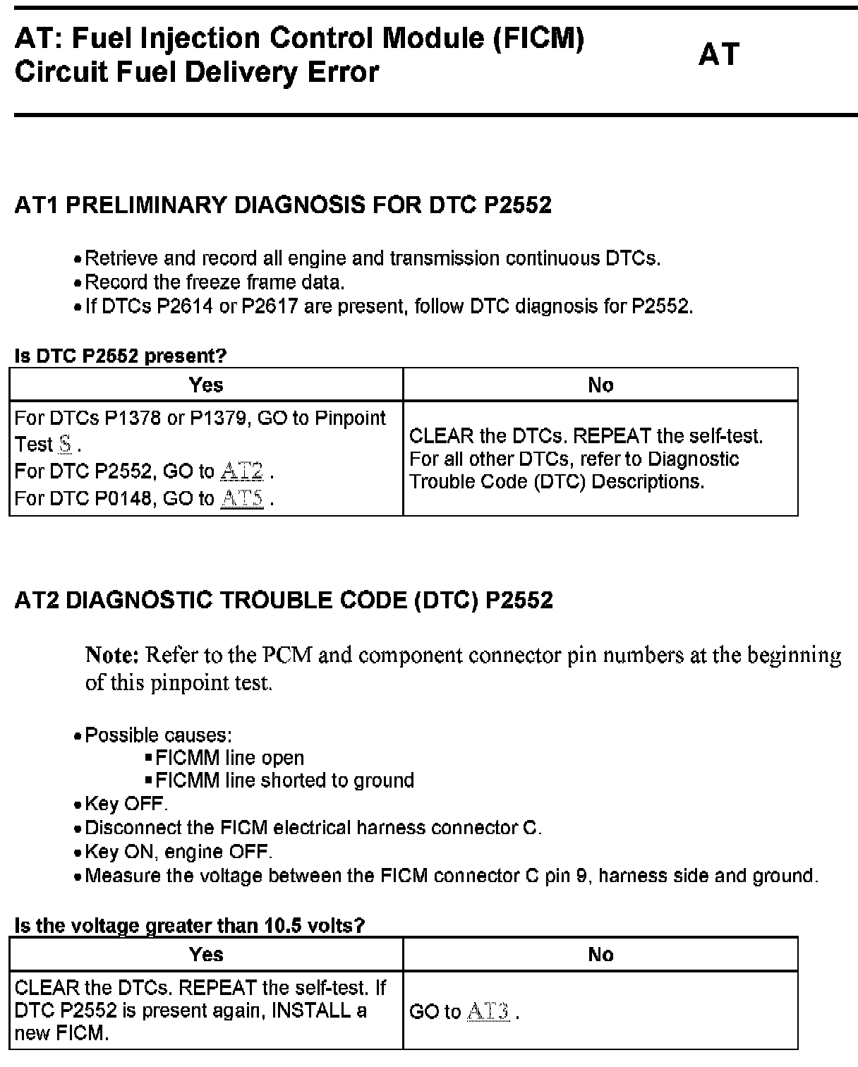 Tests AT: Fuel Injector Control Module (FICM) Circuit Fuel Delivery Error