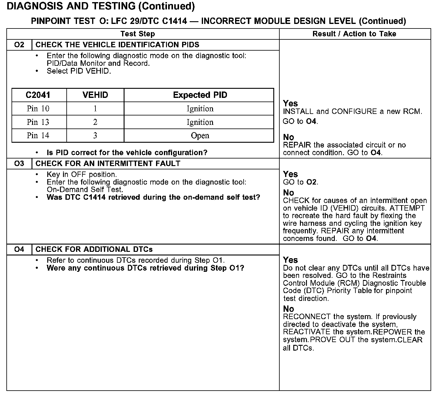 PINPOINT TEST O: LFC 29/DTC C1414 - INCORRECT MODULE DESIGN LEVELO1: