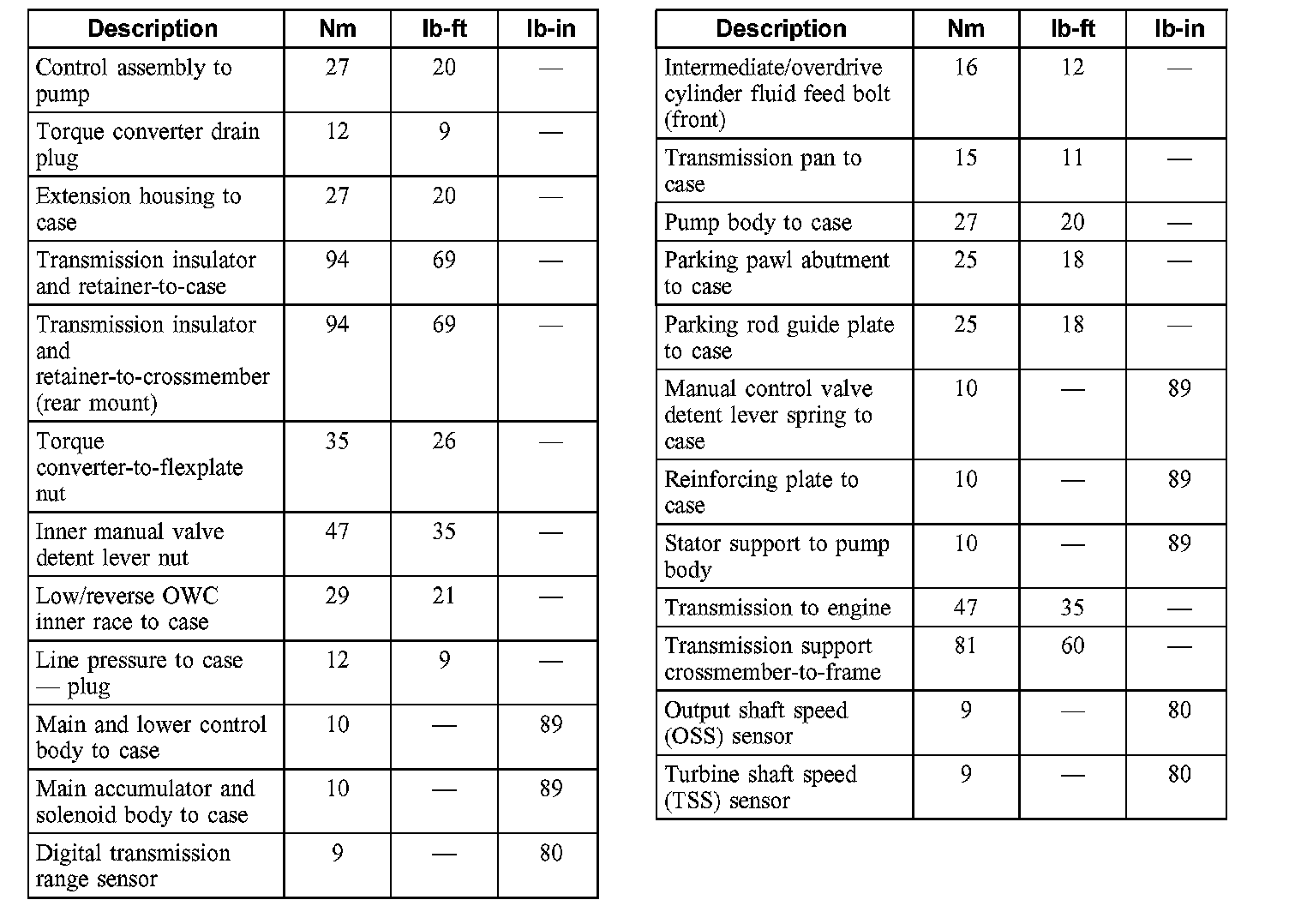 Torque Specifications