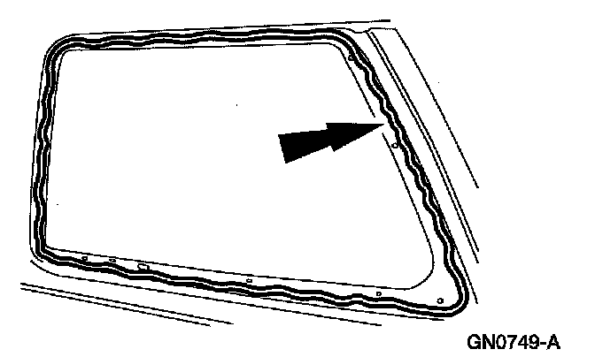 - Starting at the bottom middle and working around the frame, apply an 8-mm (0.32-in) wide strip of foam core butyl meeting Ford specification WSB-M4GB45-A to the rear quarter window glass frame.