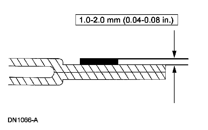 Apply a uniform 11-mm (0.43-inch) bead of Essex 400 HV Urethane High Viscosity Adhesive, Ford specification WSB-M2G316-B, on top of the existing trimmed urethane bead on the pinchweld.