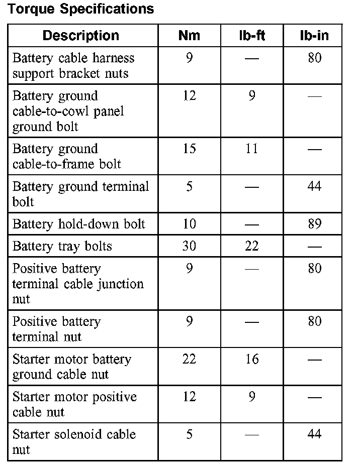 Torque Specifications: