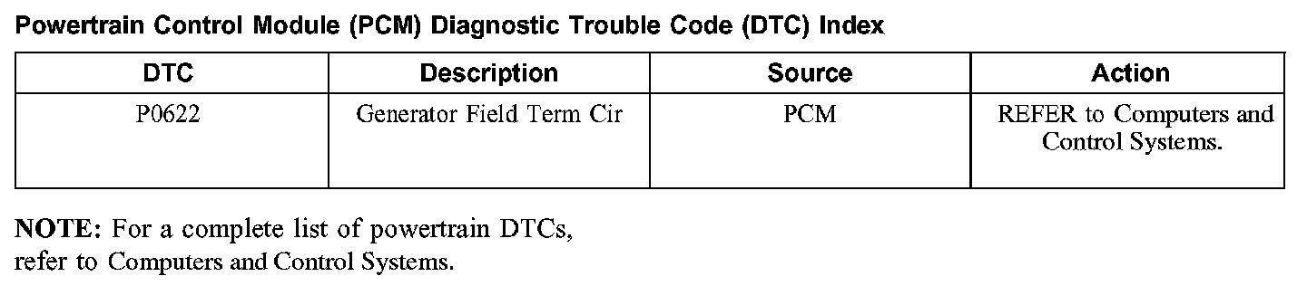 Powertrain Control Module (PCM) Diagnostic Trouble Code (DTC) Index