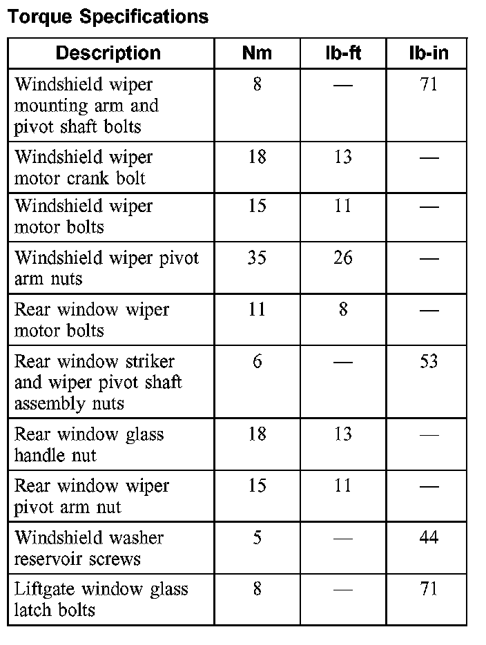 Torque Specifications