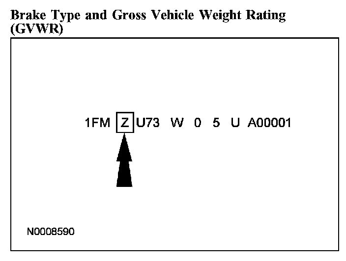 The fourth VIN position is the vehicle brake type and gross vehicle weight rating (GVWR) code, all vehicles use hydraulic brakes. This code may also identify the vehicle safety restraint system.