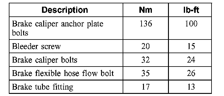 Torque Specifications:
