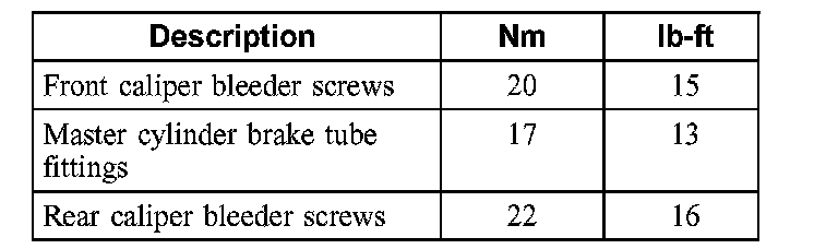 Torque Specifications: