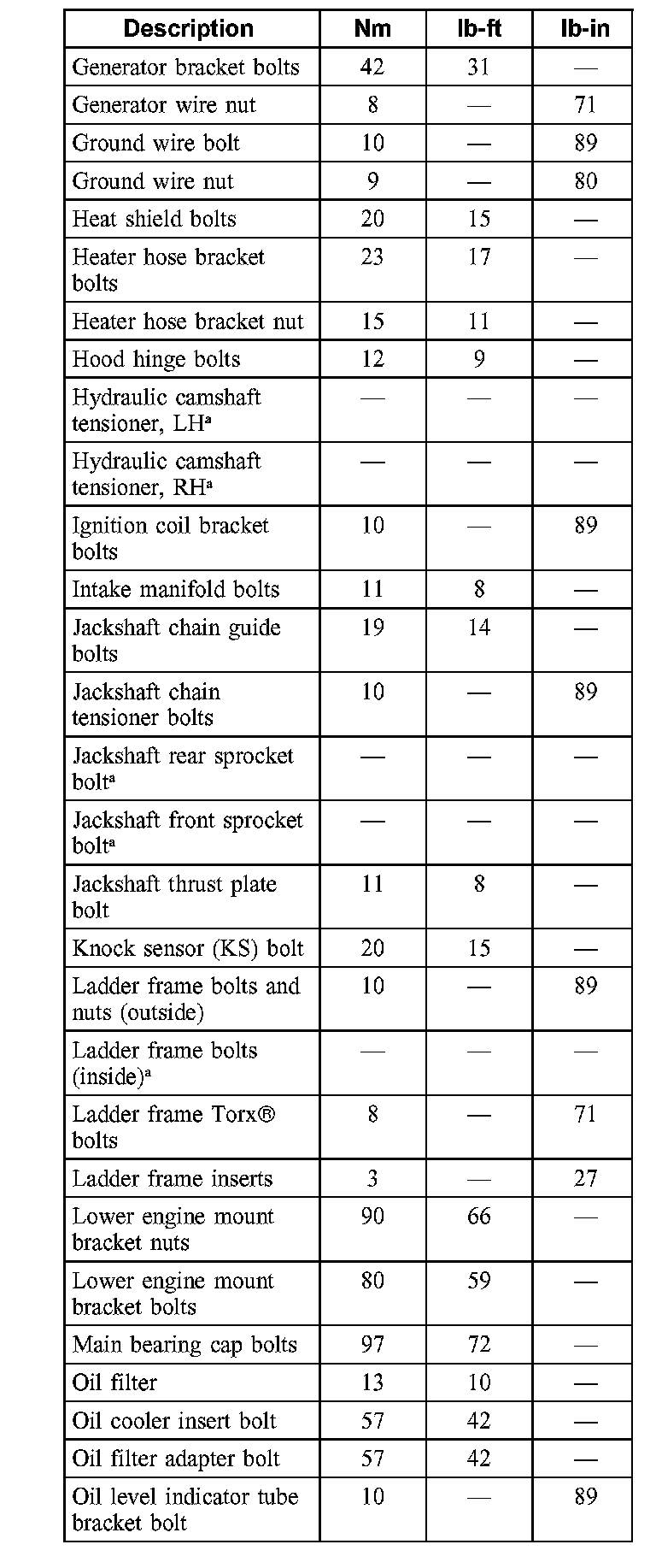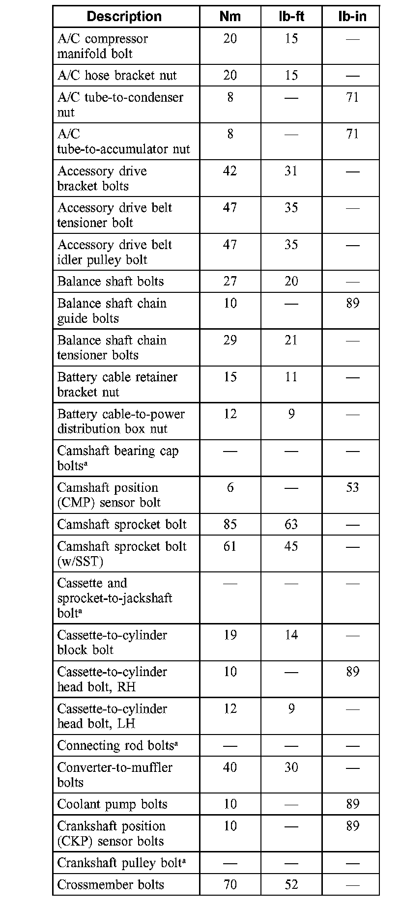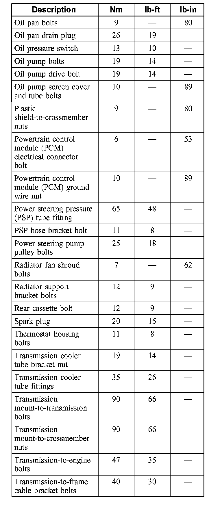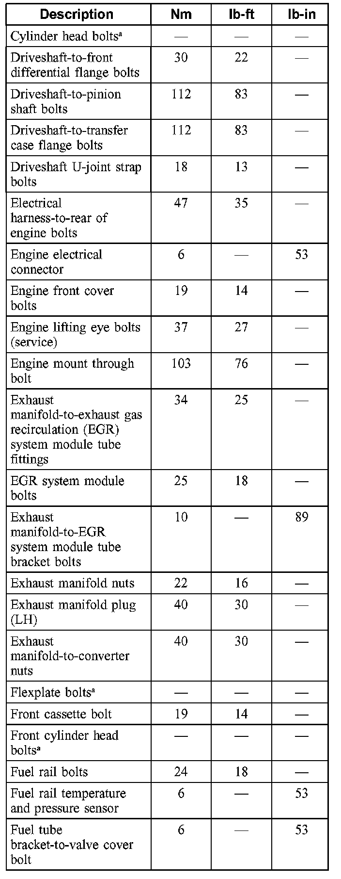 Torque Specifications