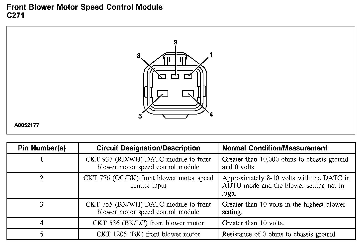 Front Blower Motor Speed Control Module C271: